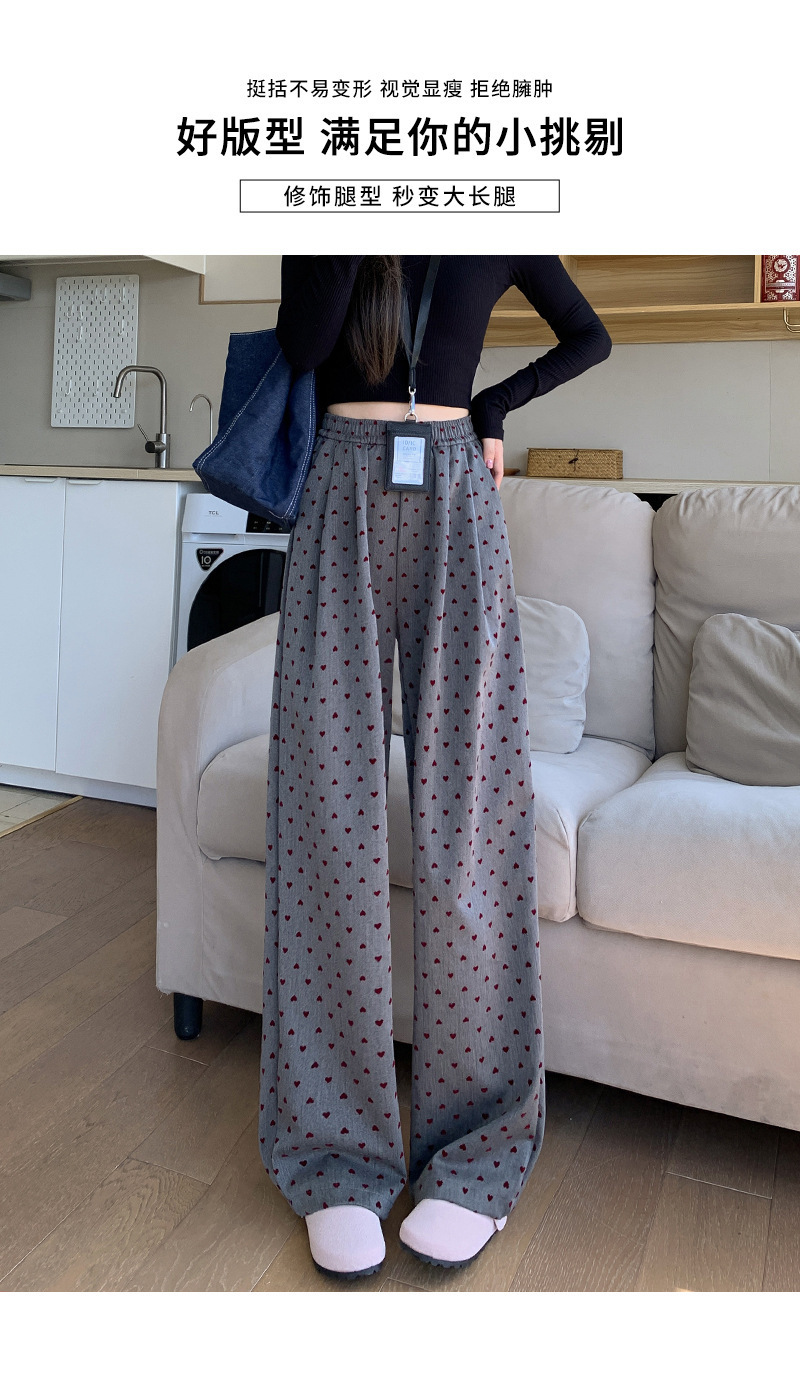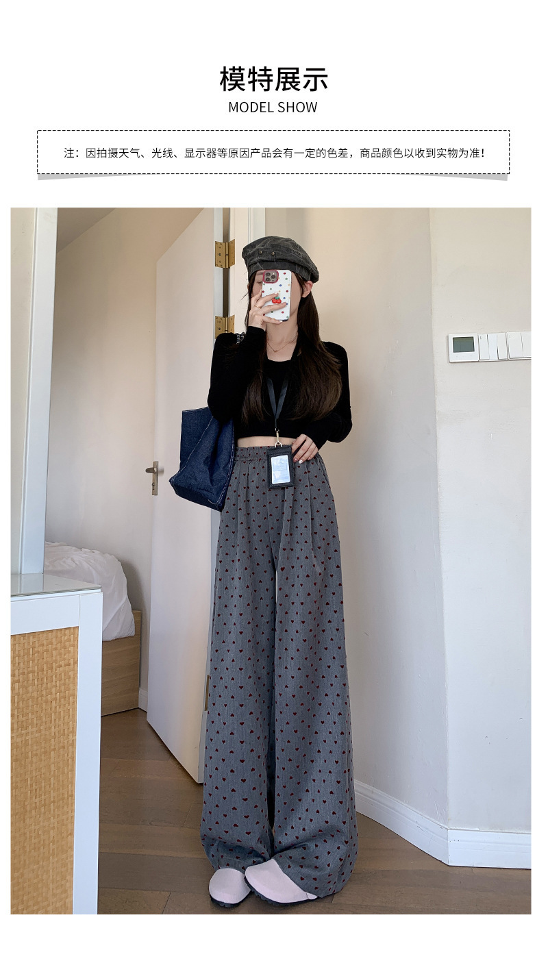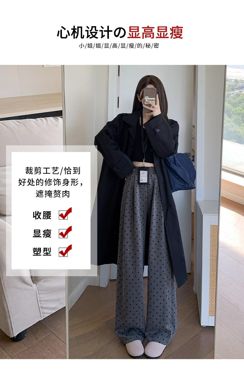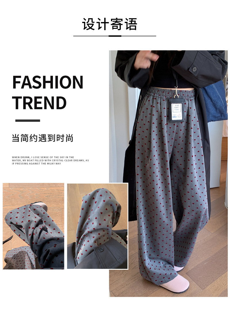 붉은 사랑 캐주얼 바지 여성의 봄과 가을 새로운 오래된 돈 스타일 느슨한 세트 높은 허리 슬리밍 넓은 다리 바지스토어 가기
