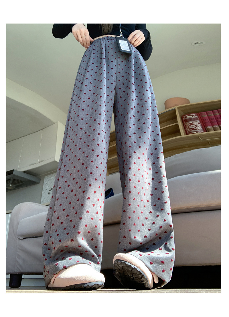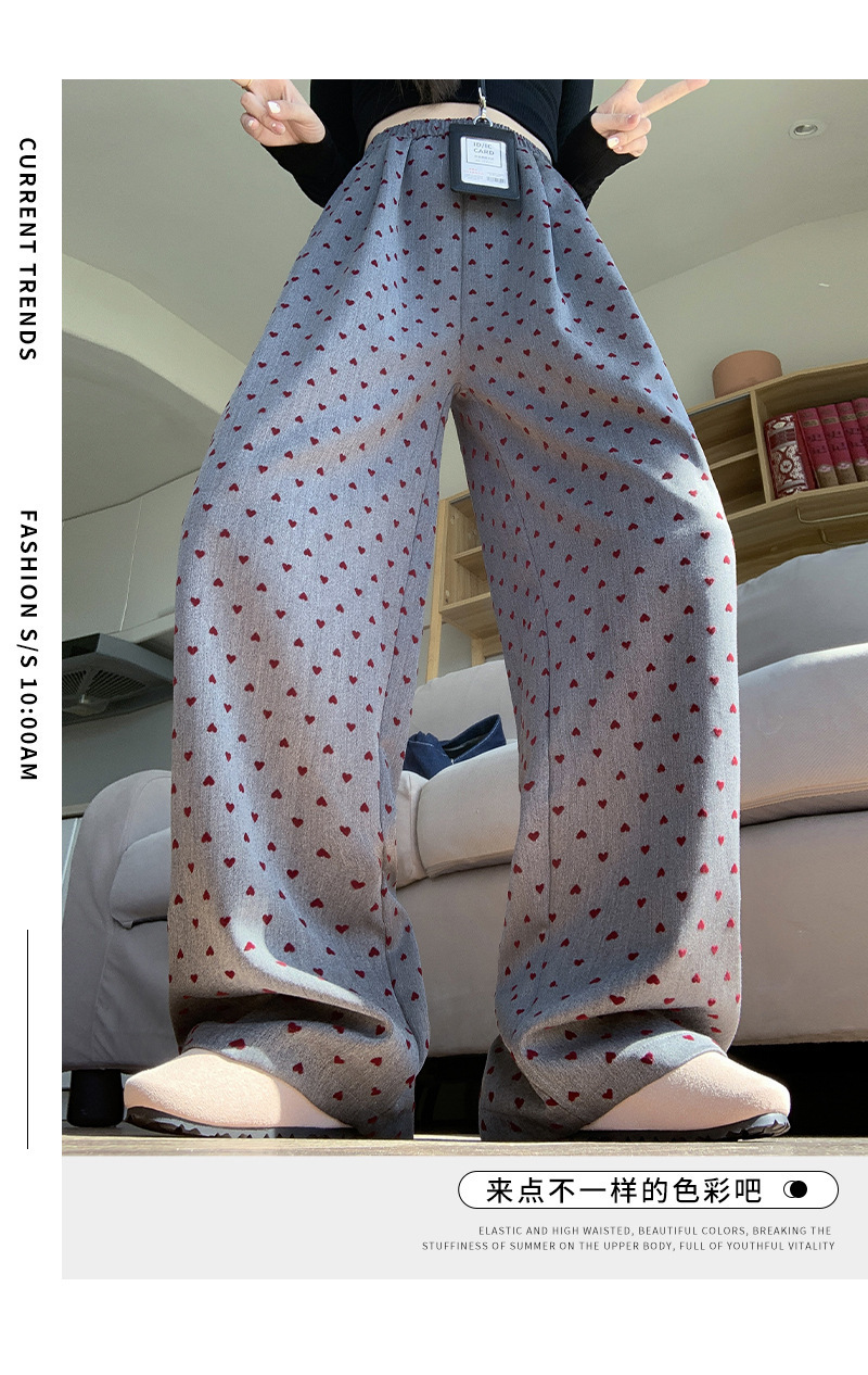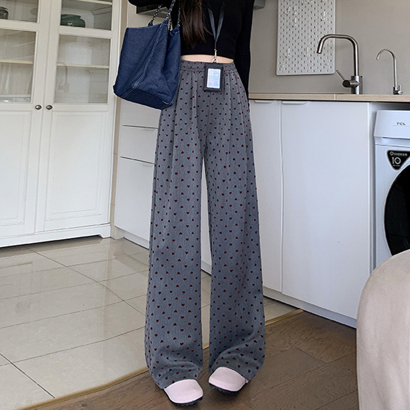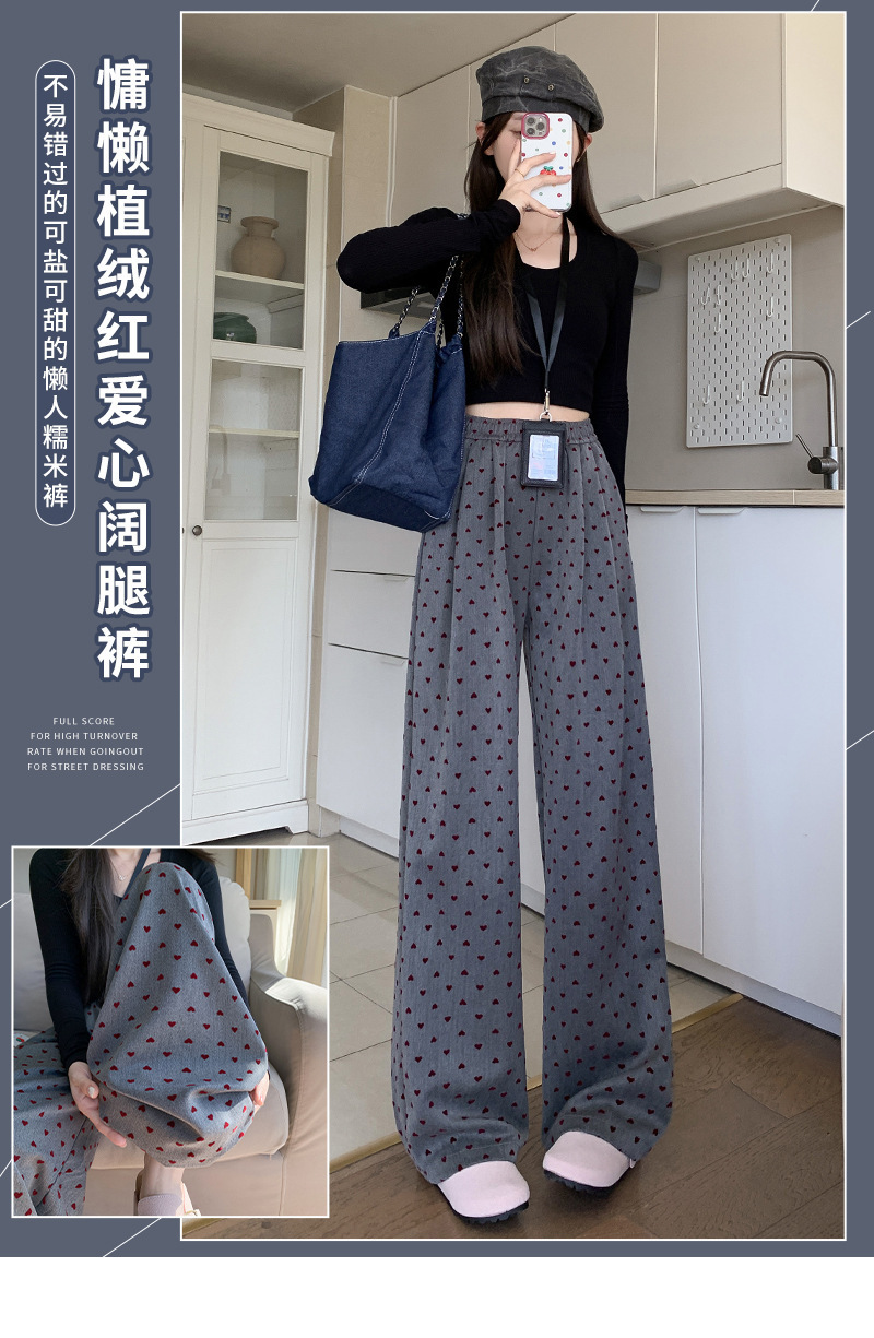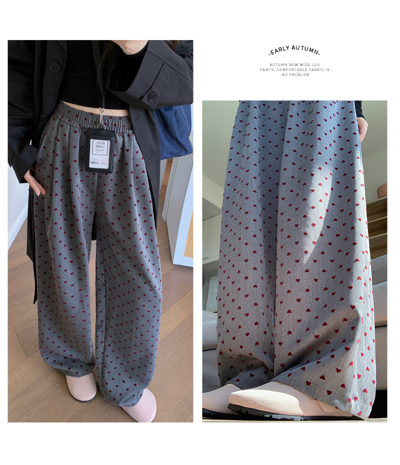 붉은 사랑 캐주얼 바지 여성의 봄과 가을 새로운 오래된 돈 스타일 느슨한 세트 높은 허리 슬리밍 넓은 다리 바지스토어 가기