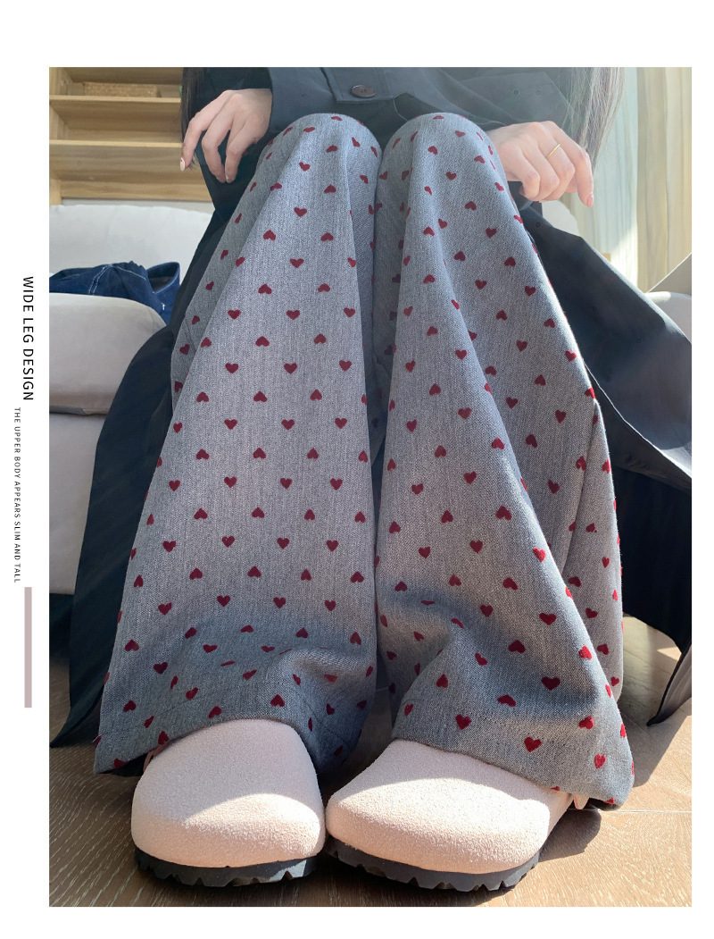 붉은 사랑 캐주얼 바지 여성의 봄과 가을 새로운 오래된 돈 스타일 느슨한 세트 높은 허리 슬리밍 넓은 다리 바지