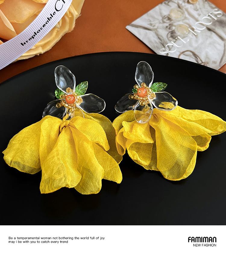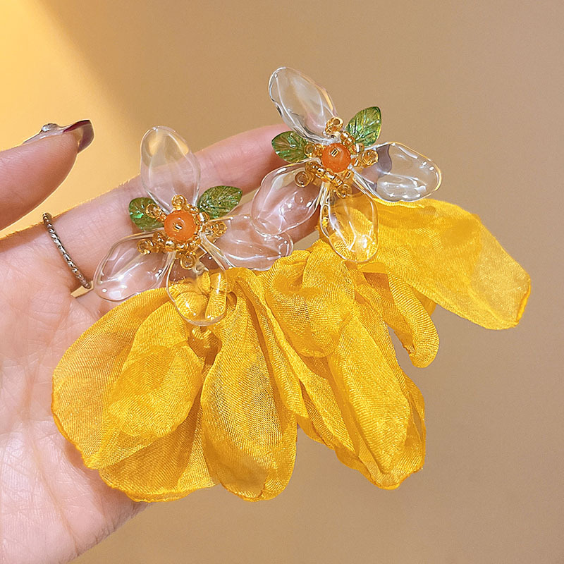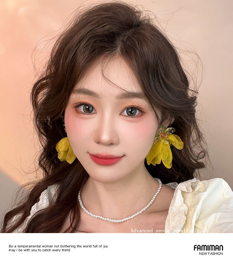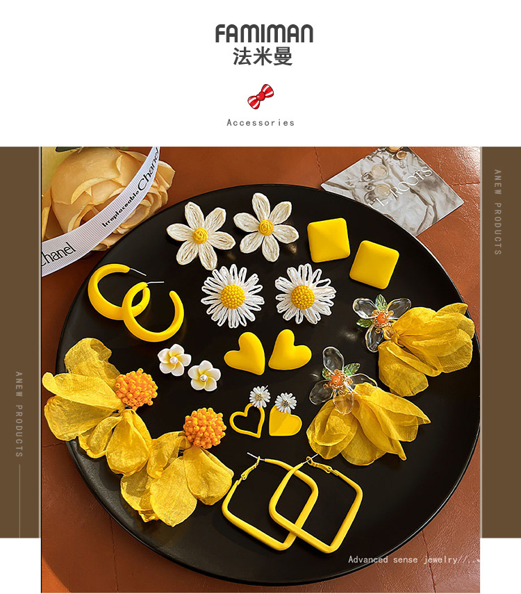 이른 봄 노란색 스타일 휴일 스타일 꽃 귀걸이 여성의 폭발성 하이 엔드 럭셔리 귀걸이 틈새 디자인 귀 액세서리스토어 가기