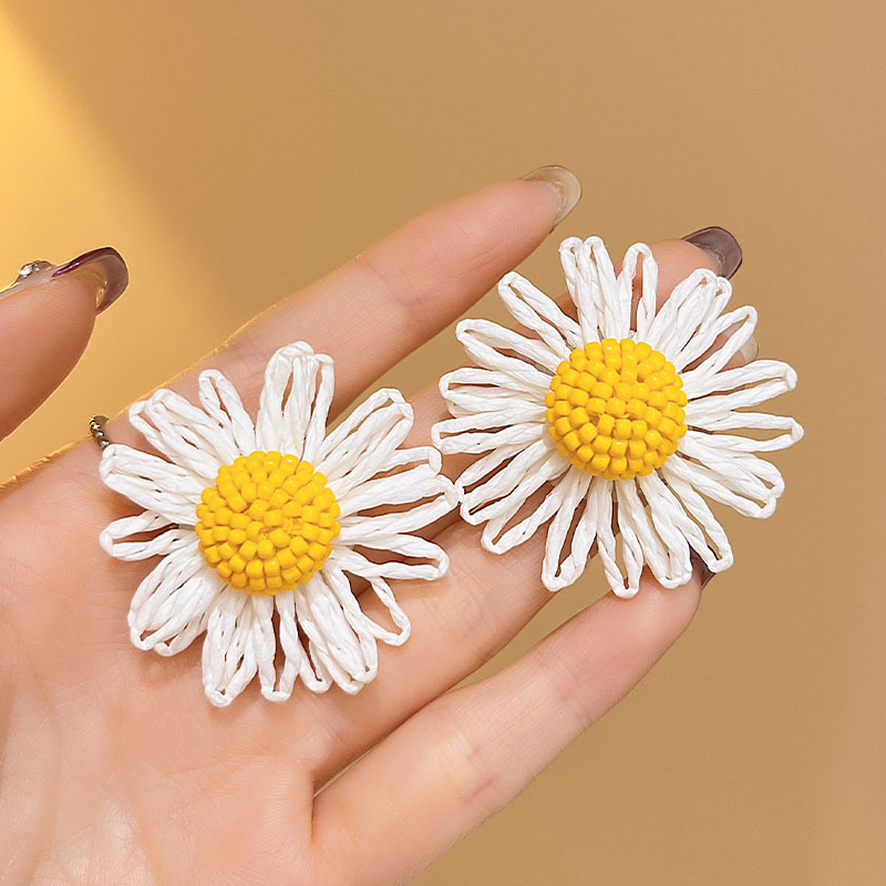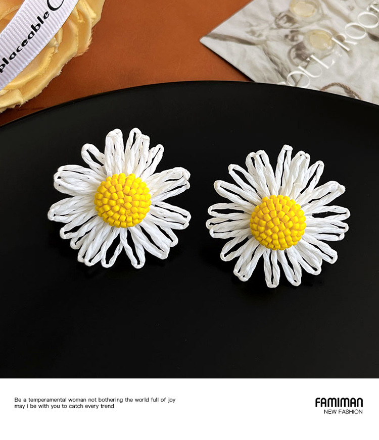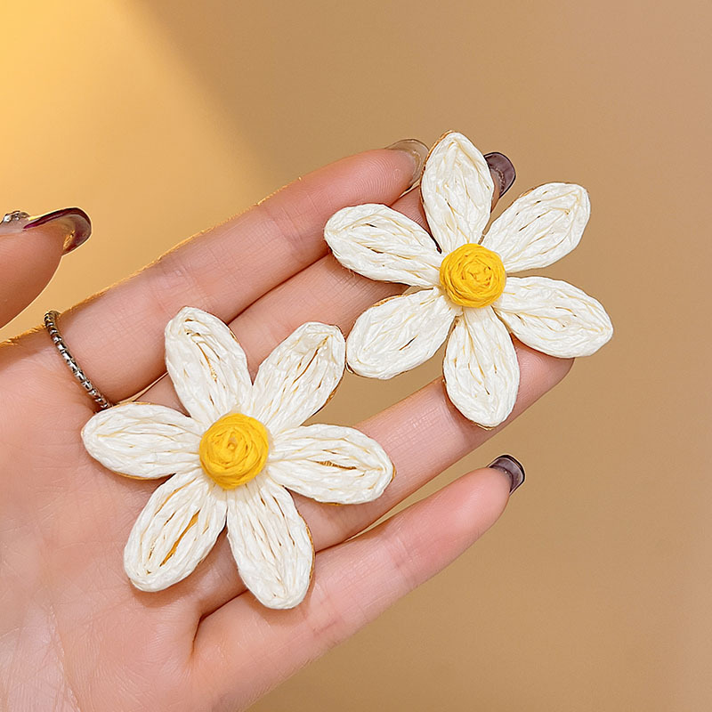 • 오프화이트 밀짚으로 만든 과장된 대형 꽃 이어훅