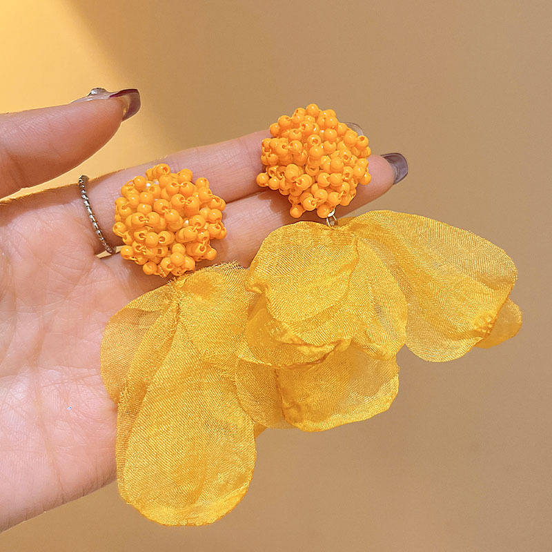 이른 봄 노란색 스타일 휴일 스타일 꽃 귀걸이 여성의 폭발성 하이 엔드 럭셔리 귀걸이 틈새 디자인 귀 액세서리