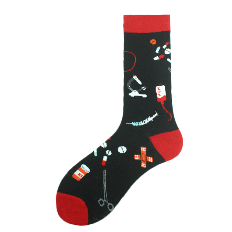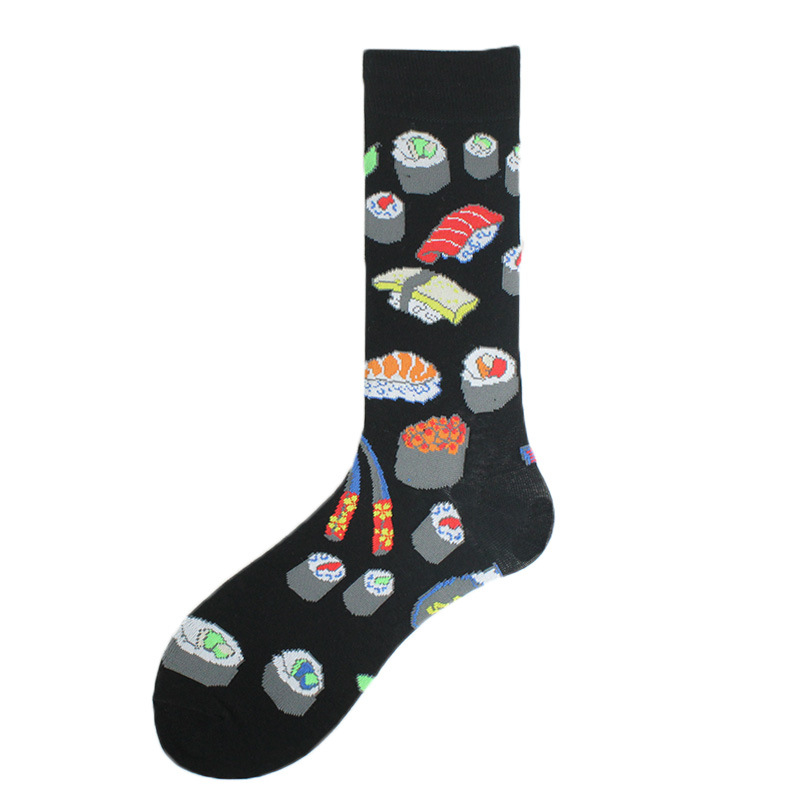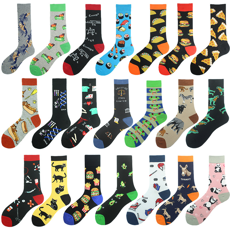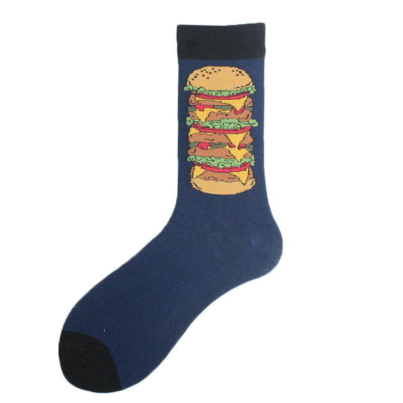 폴리에스터 양말, 유럽 및 미국 트렌디 브랜드 크리에이티브 푸드 버거 및 감자 튀김 트렌디 폴리에스터 양말, 남성용 종아리 중간 폴리에스터 양말