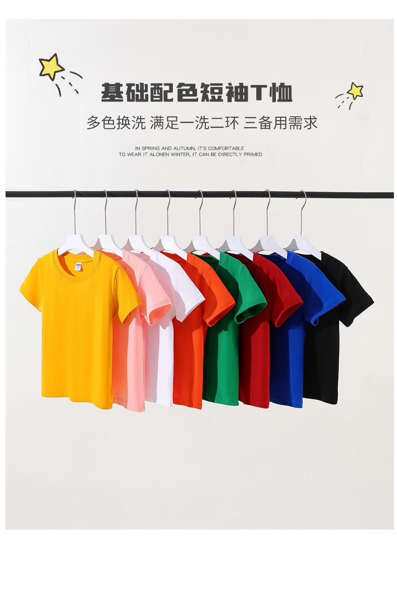 어린이 면화 반팔 2025 여름 둥근 목 솔리드 컬러 코튼 반팔 광고 로고 티셔츠 소년 소녀 용스토어 가기
