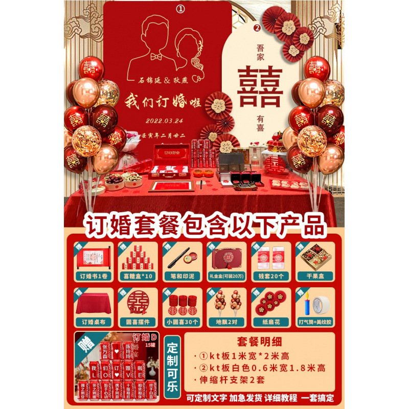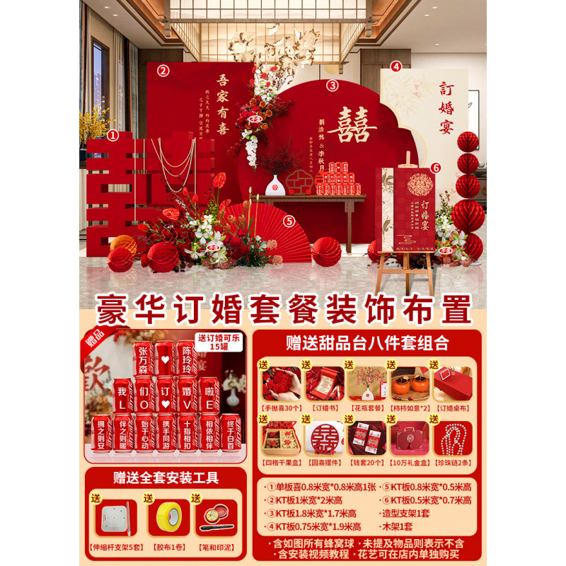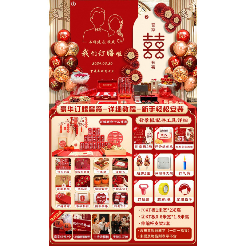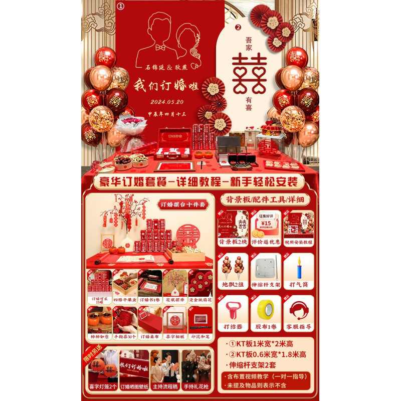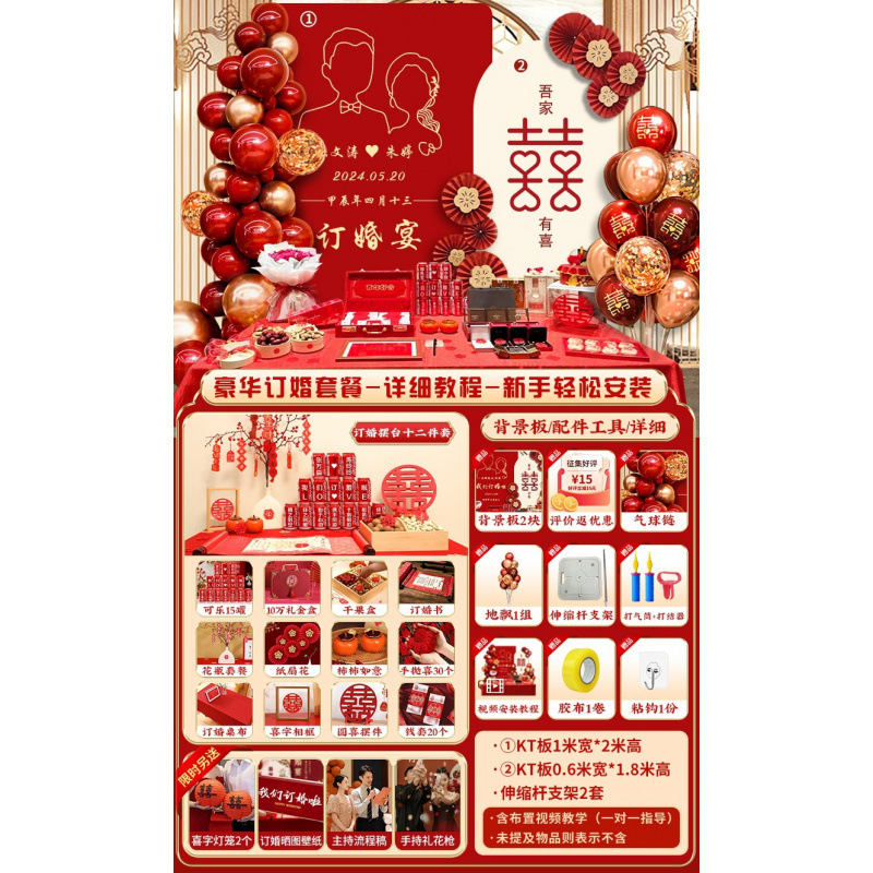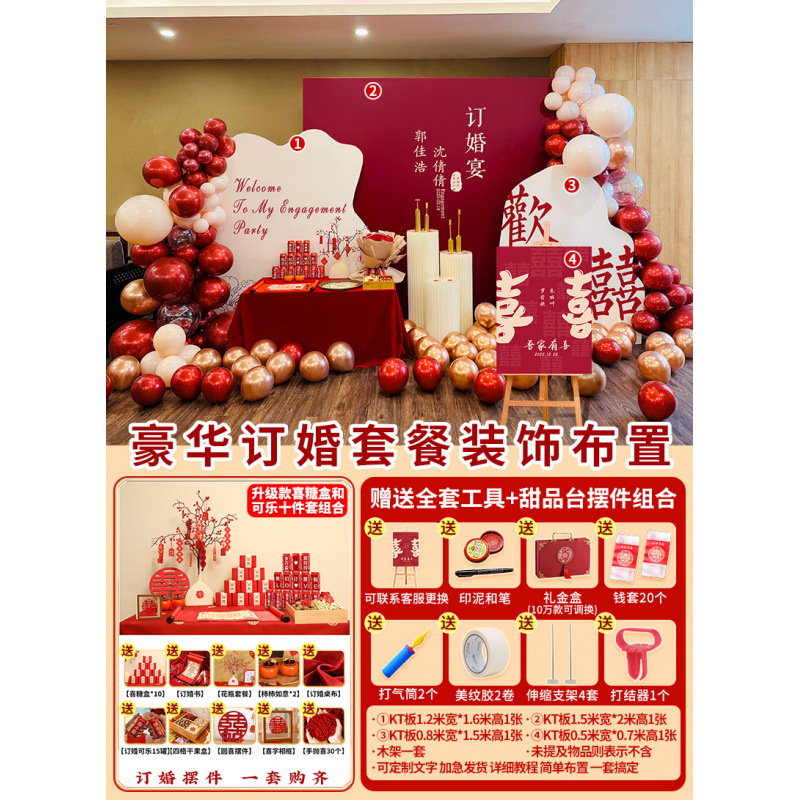 인터넷 유명 인사 약혼 연회 장식 장면 2025 배경 벽 kt 보드 약혼 장식 테이블 고급 용품 전체 패키지