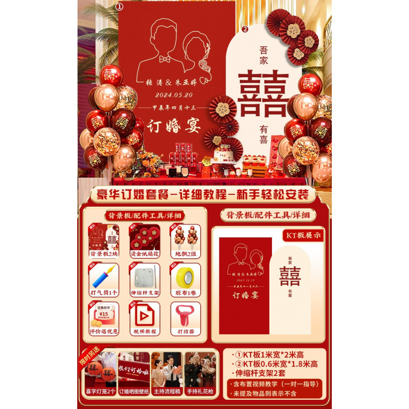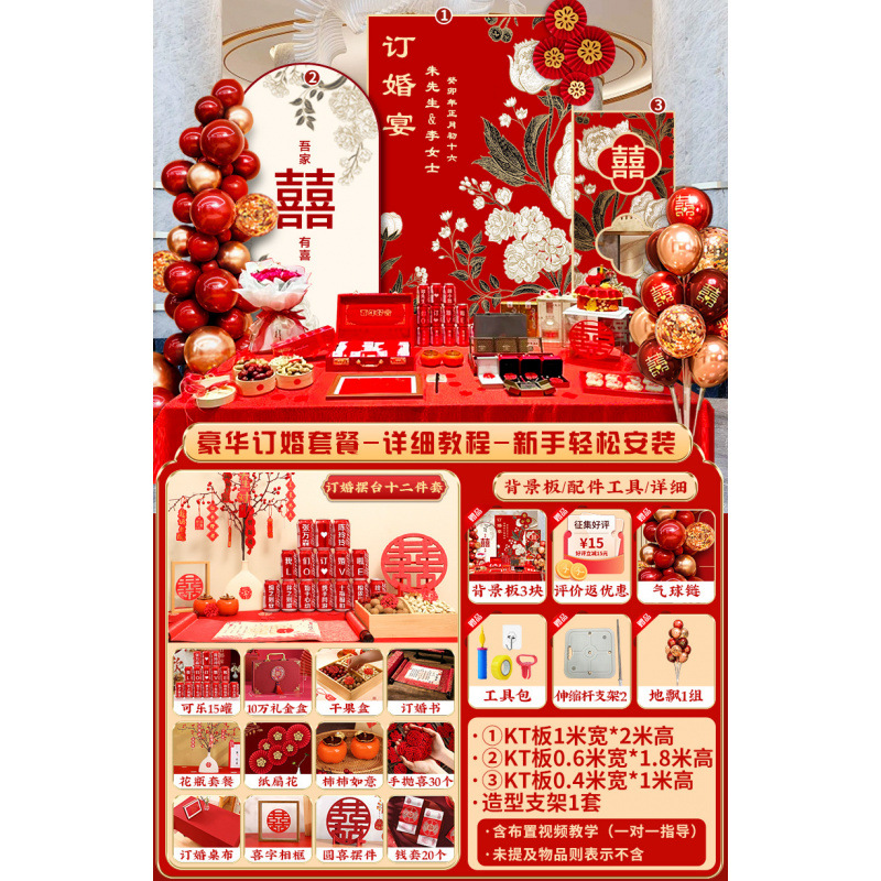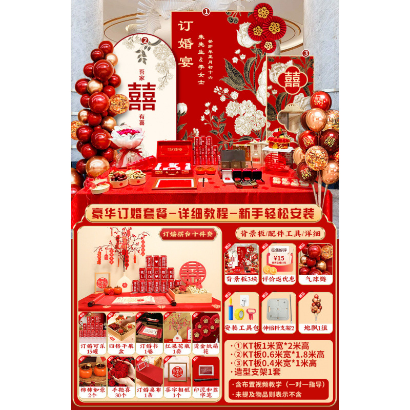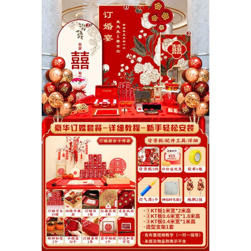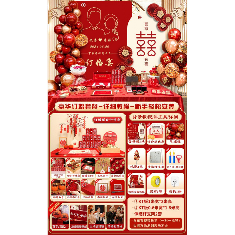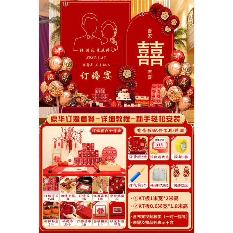 인터넷 유명 인사 약혼 연회 장식 장면 2025 배경 벽 kt 보드 약혼 장식 테이블 고급 용품 전체 패키지