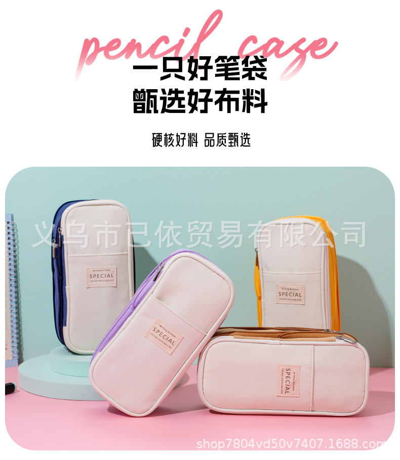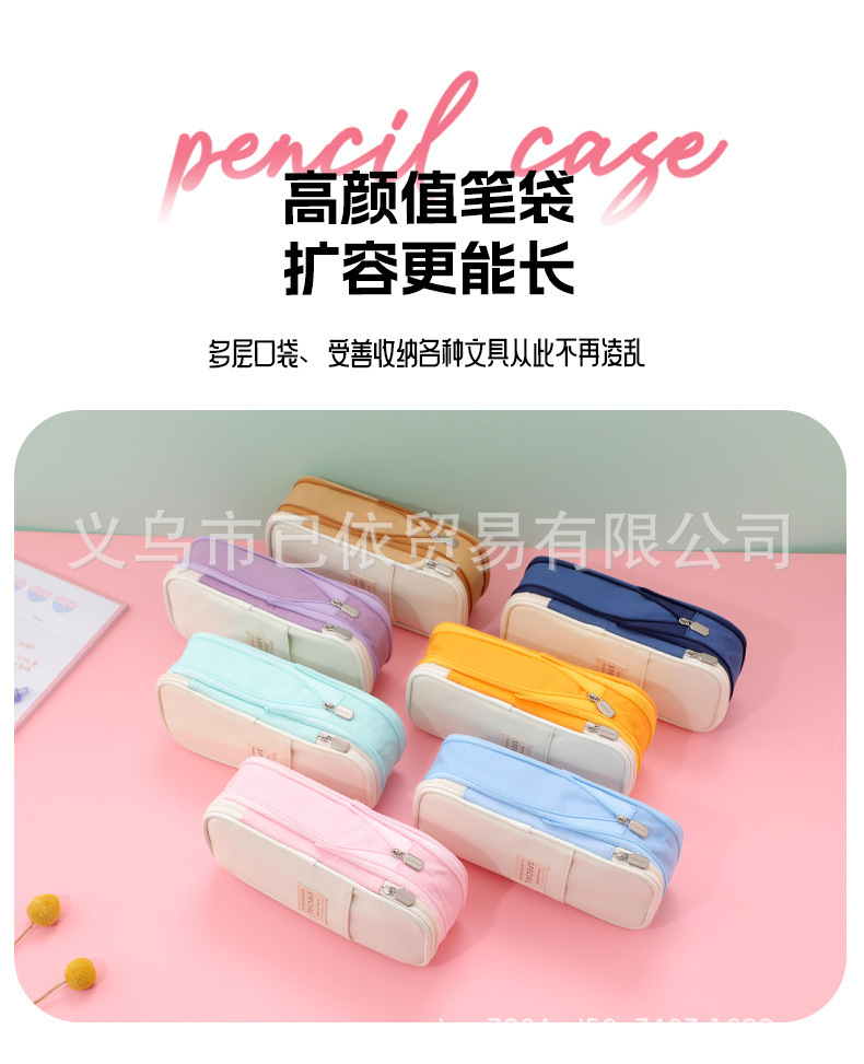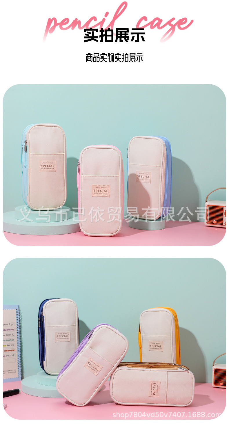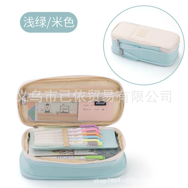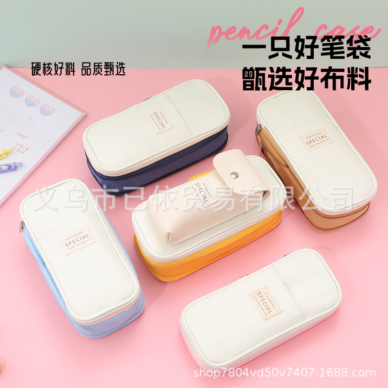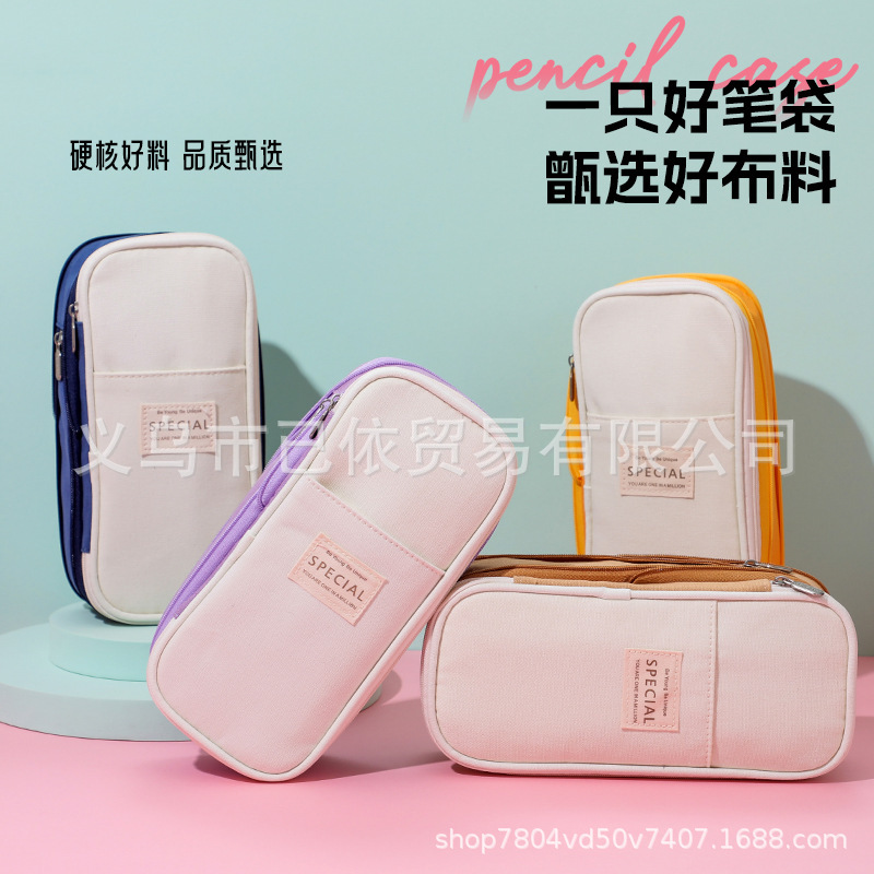 새로운 멀티 레이어 캔버스 개폐식 연필 가방 한국 스타일 간단한 학생 마카롱 컬러 블록 가변 대용량 문구 가방스토어 가기