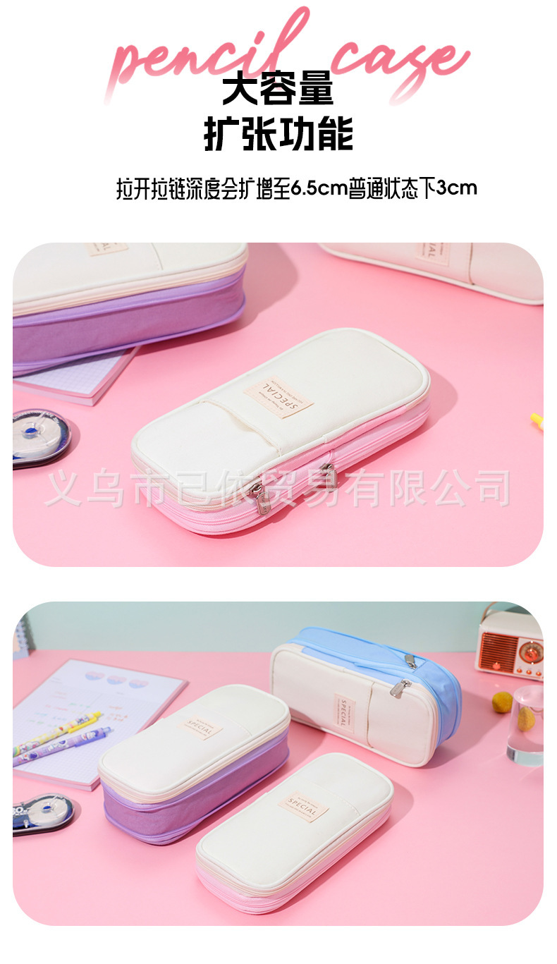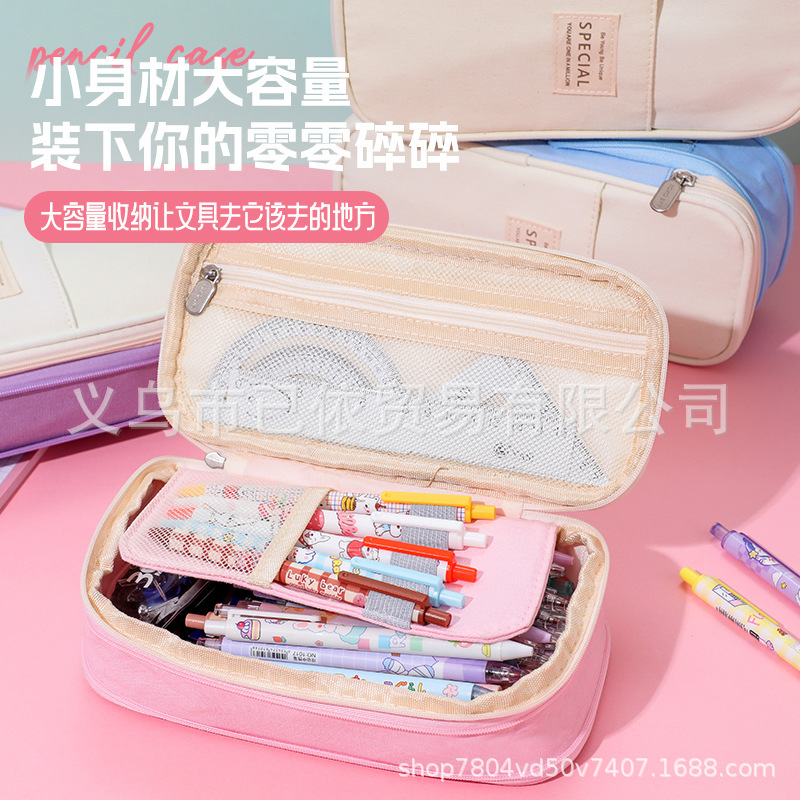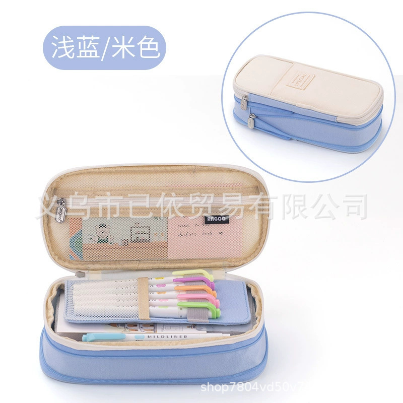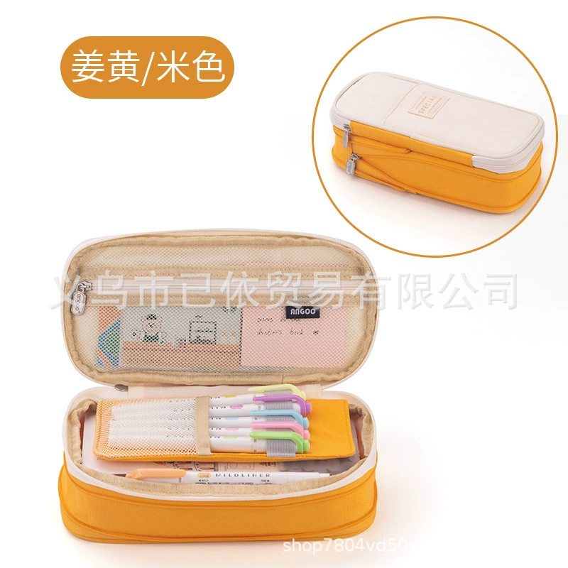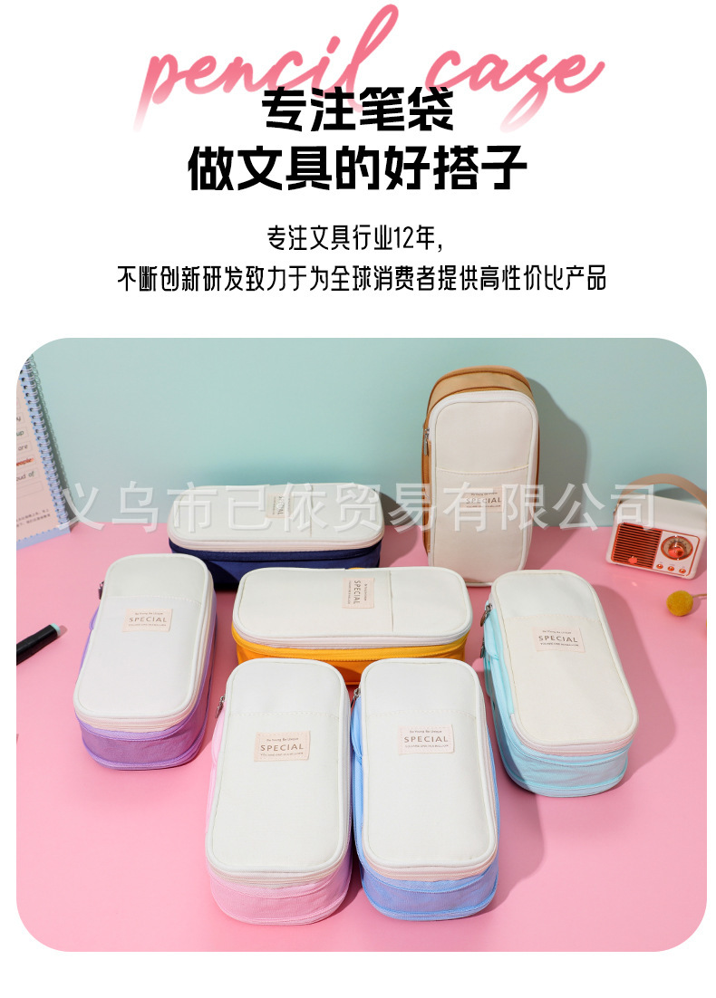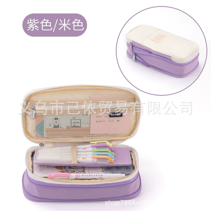 새로운 멀티 레이어 캔버스 개폐식 연필 가방 한국 스타일 간단한 학생 마카롱 컬러 블록 가변 대용량 문구 가방스토어 가기
