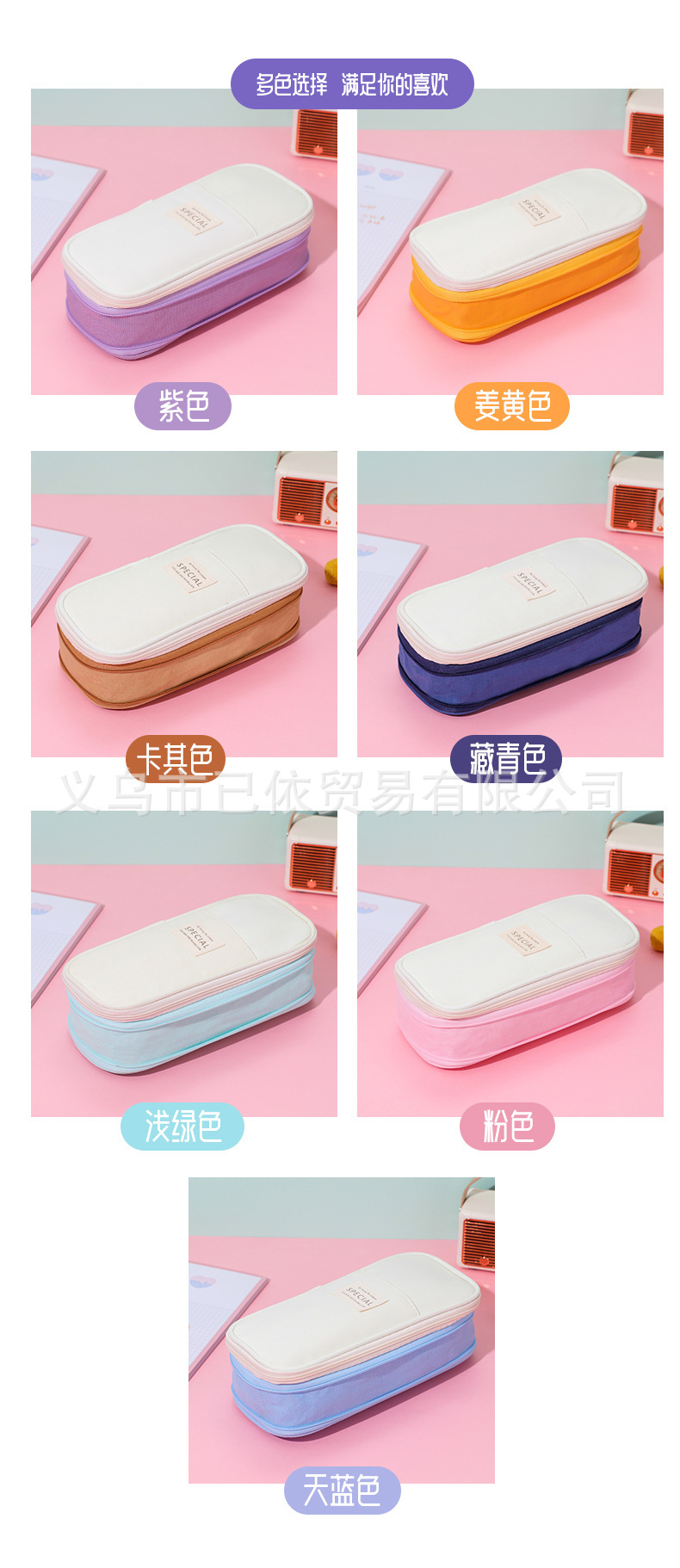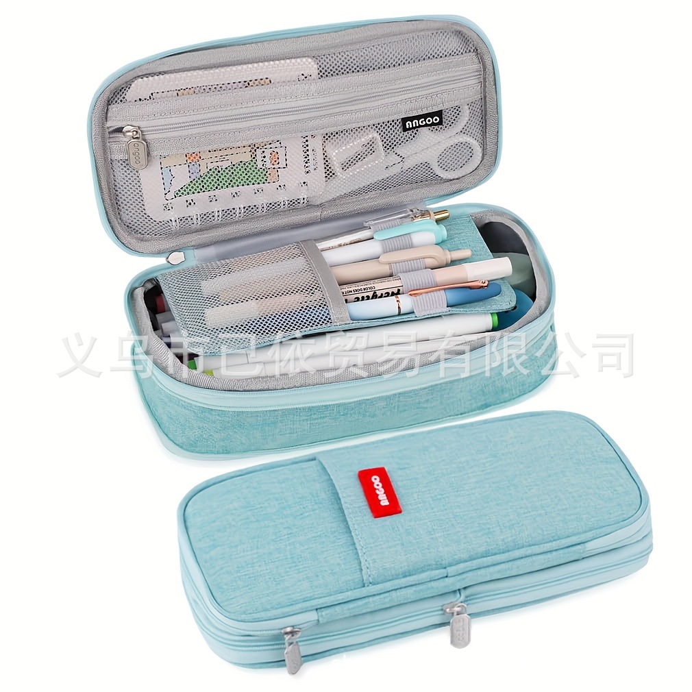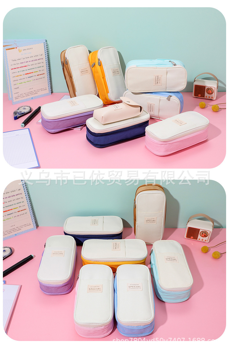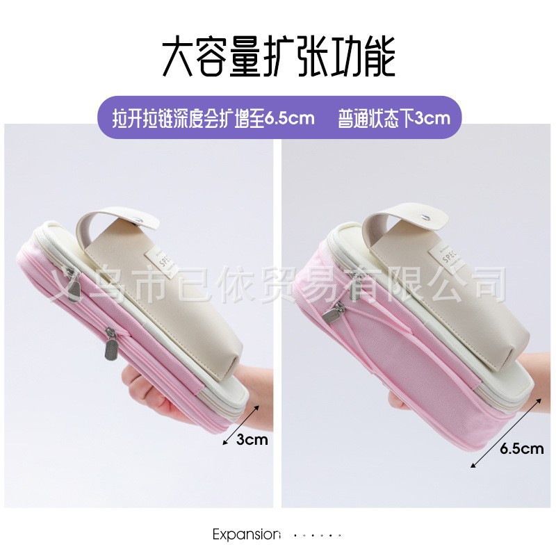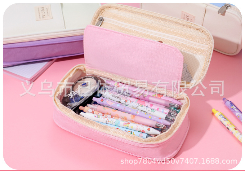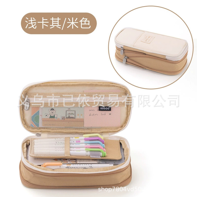 새로운 멀티 레이어 캔버스 개폐식 연필 가방 한국 스타일 간단한 학생 마카롱 컬러 블록 가변 대용량 문구 가방스토어 가기