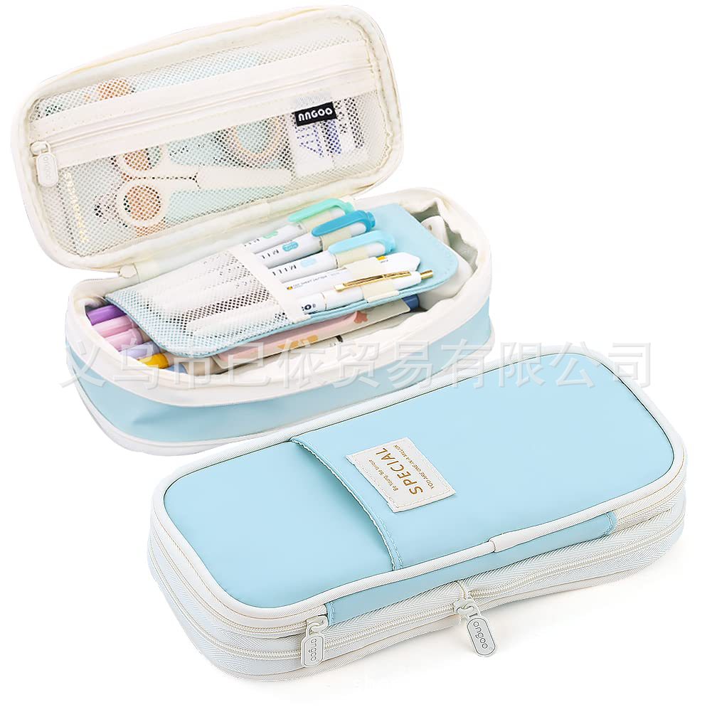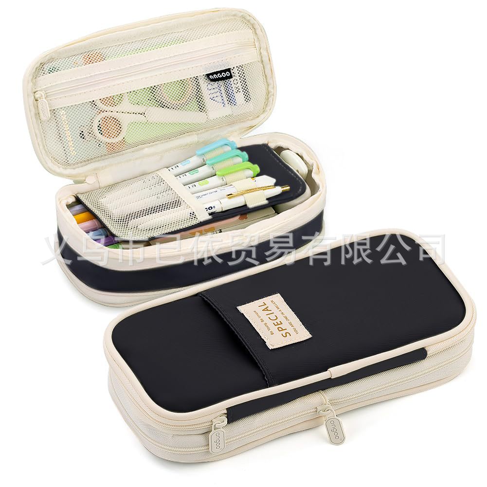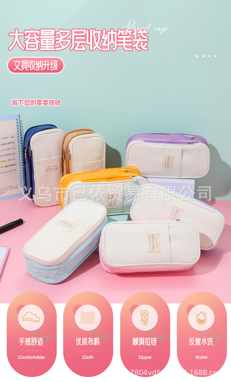 새로운 멀티 레이어 캔버스 개폐식 연필 가방 한국 스타일 간단한 학생 마카롱 컬러 블록 가변 대용량 문구 가방