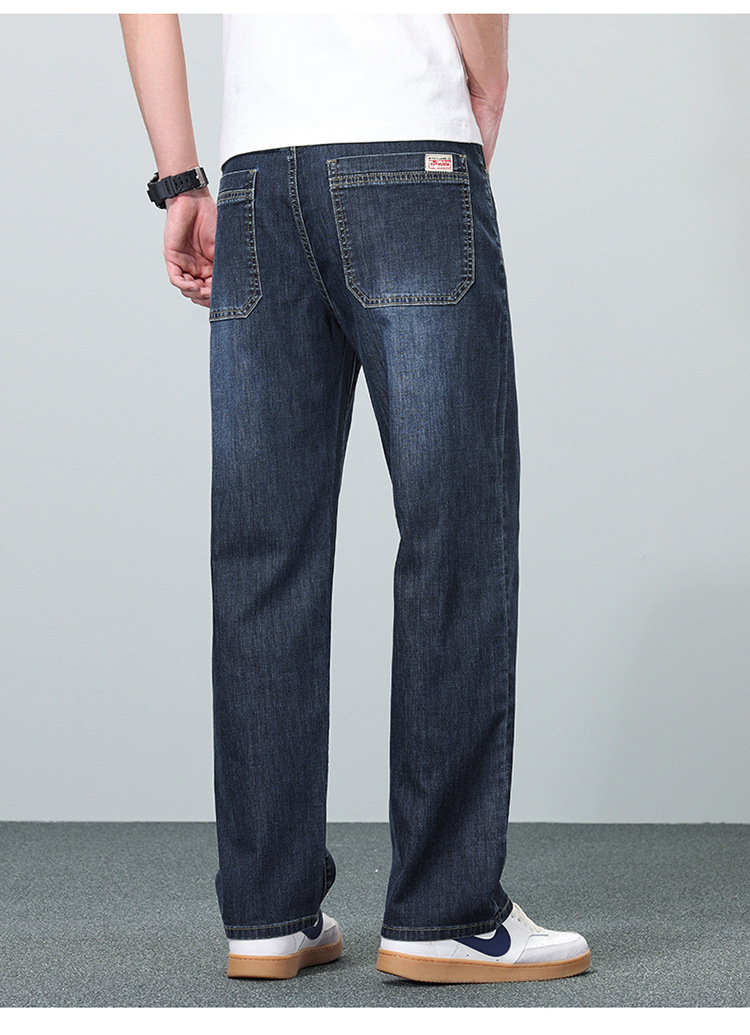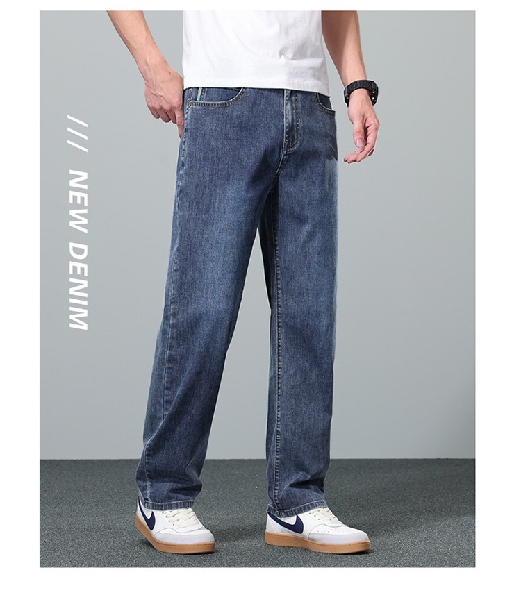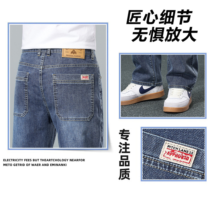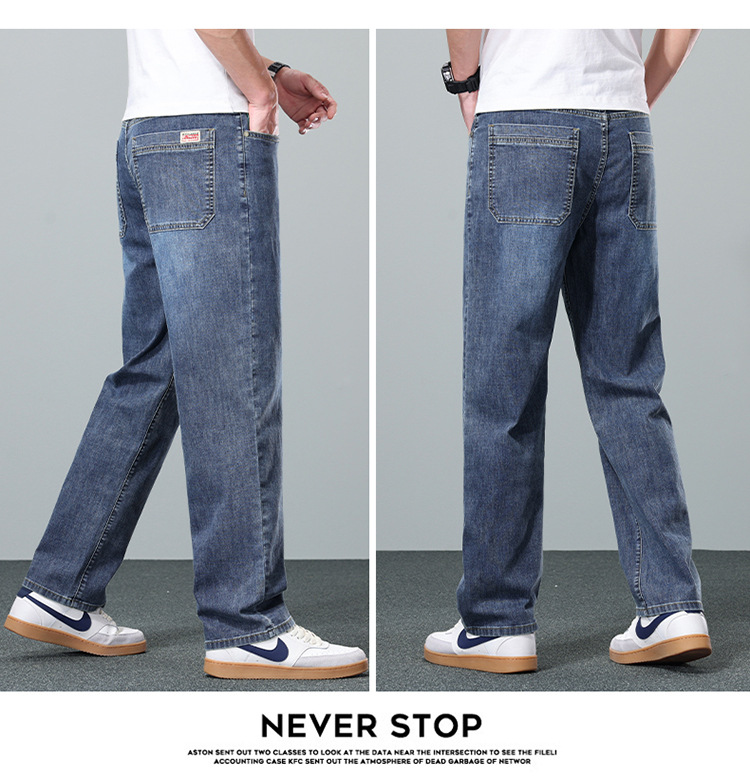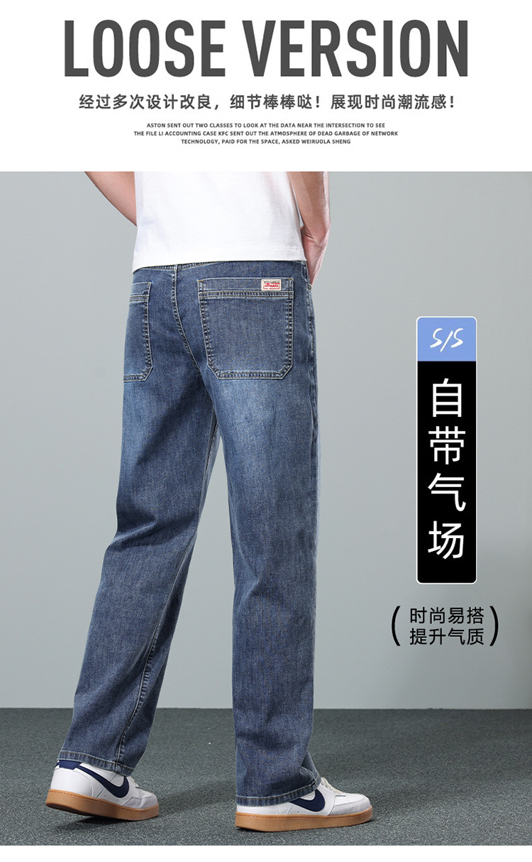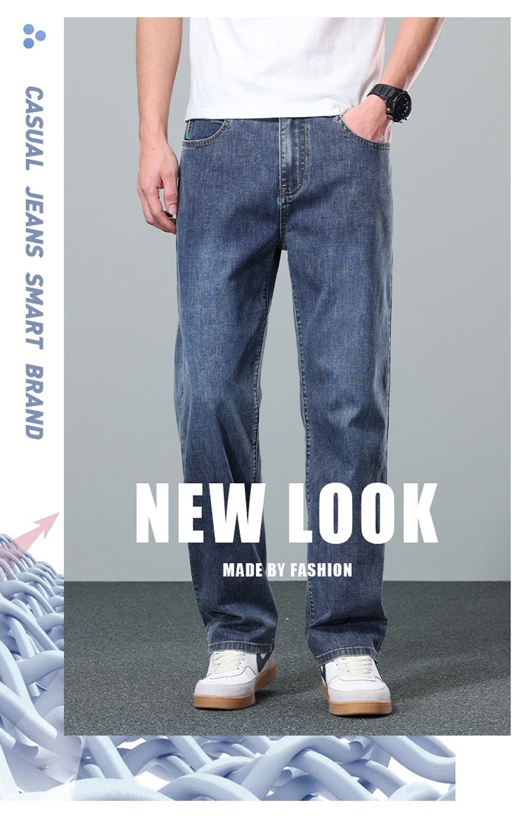 2025 새로운 봄과 여름 얇은 청바지 남성 작은 스트레이트 튜브 청소년 패션 슬림 적합 탄성 남성 바지 통기성 소프트스토어 가기