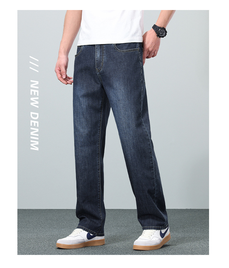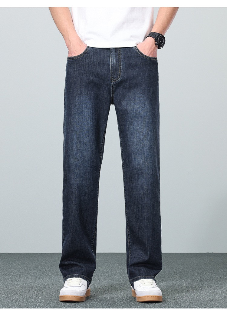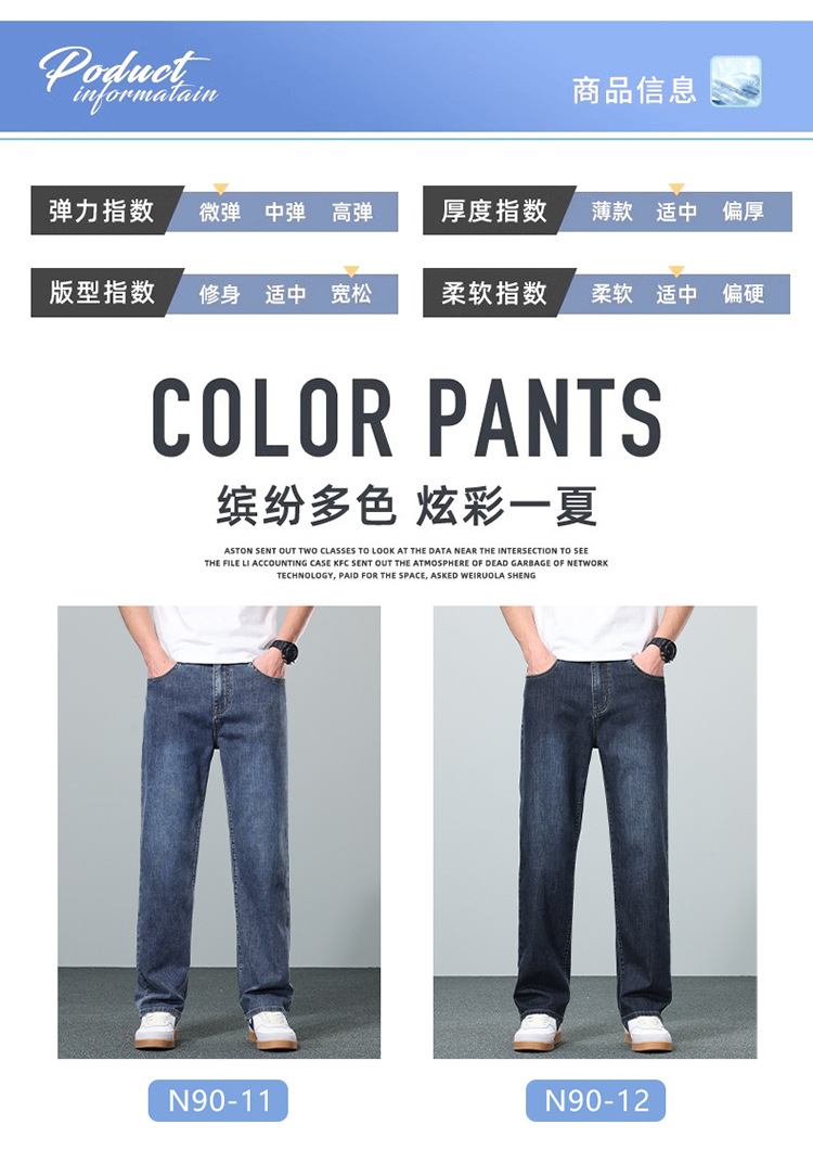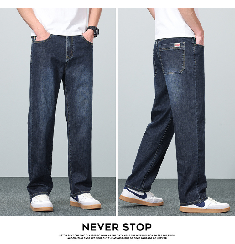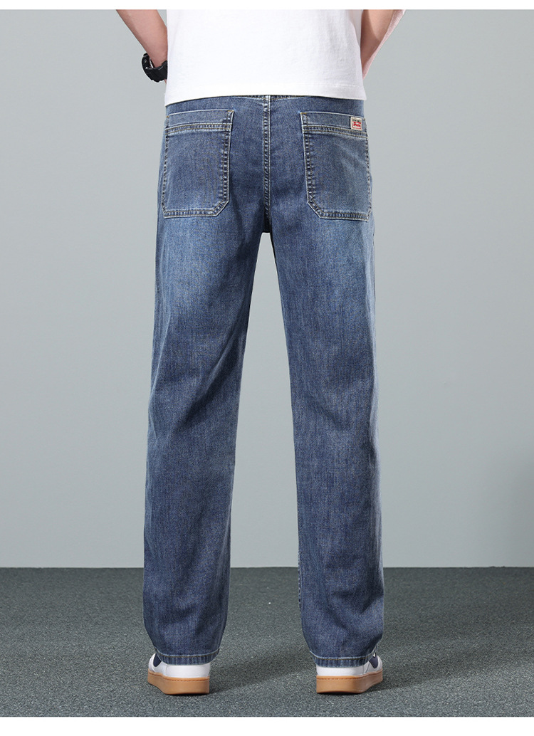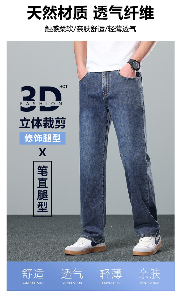2025 새로운 봄과 여름 얇은 청바지 남성 작은 스트레이트 튜브 청소년 패션 슬림 적합 탄성 남성 바지 통기성 소프트스토어 가기
