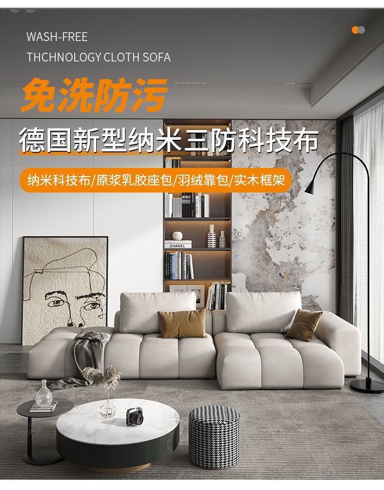 두부 블록 모듈 기술 패브릭 소파 거실 작은 아파트 팔걸이 스트레이트 행 매트 천 고양이 스크래치 가죽 스퀘어 소파스토어 가기