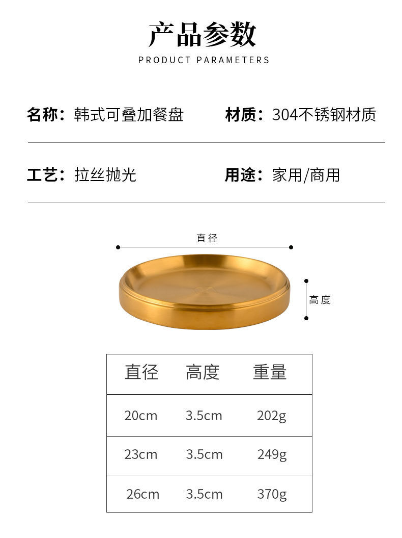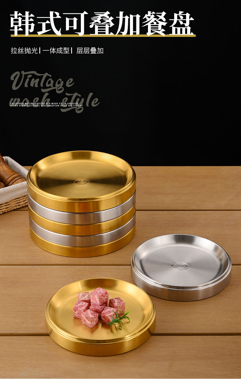 한국식 304 스테인레스 스틸 접시 준비 접시 냄비 바베큐 가게 뷔페 플레이트 주방 쌓을 수있는 반찬판 보관판