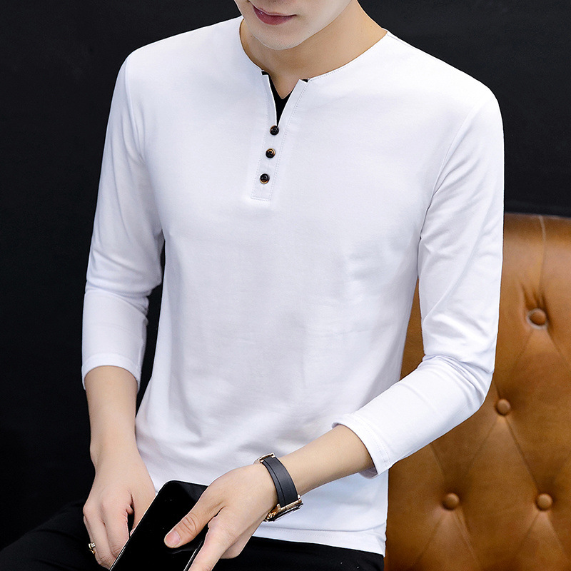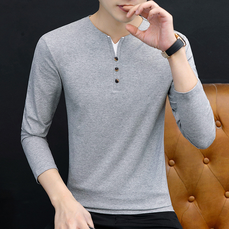새로운 트렌디 한 긴팔 티셔츠 남자 가을 옷 가을 남자 최고면 베이스 셔츠 V-넥 셔츠 봄과 가을