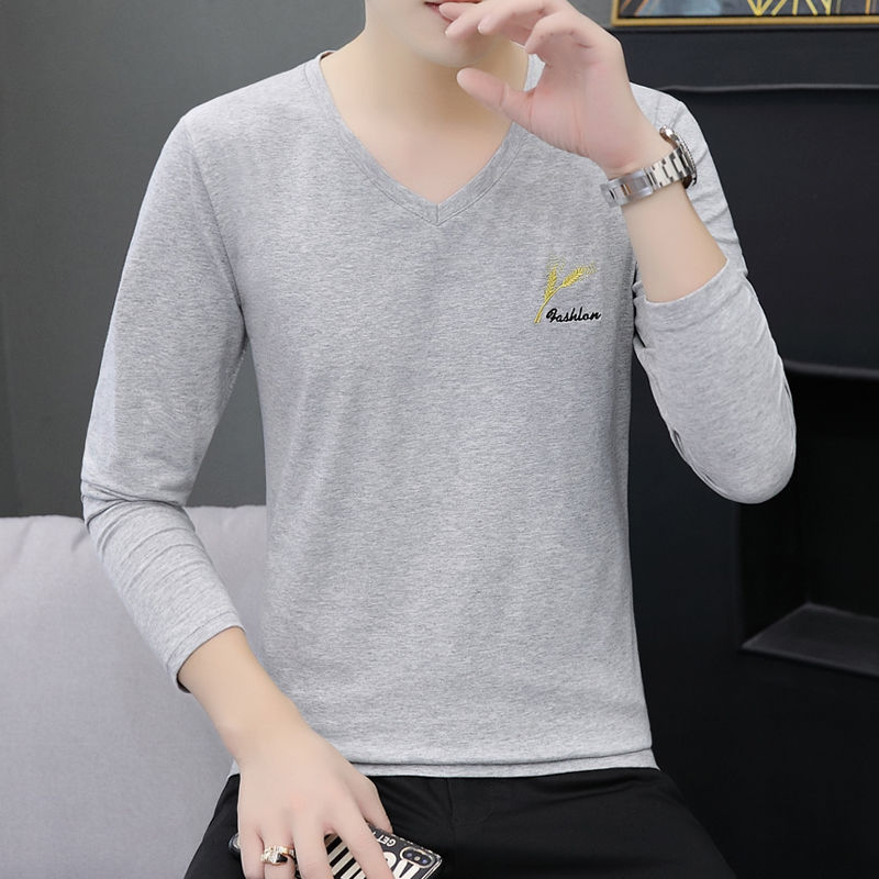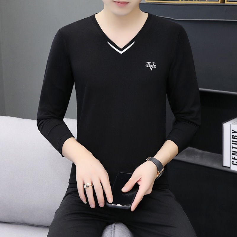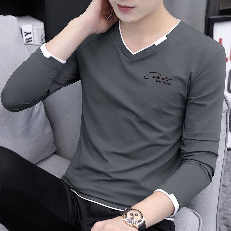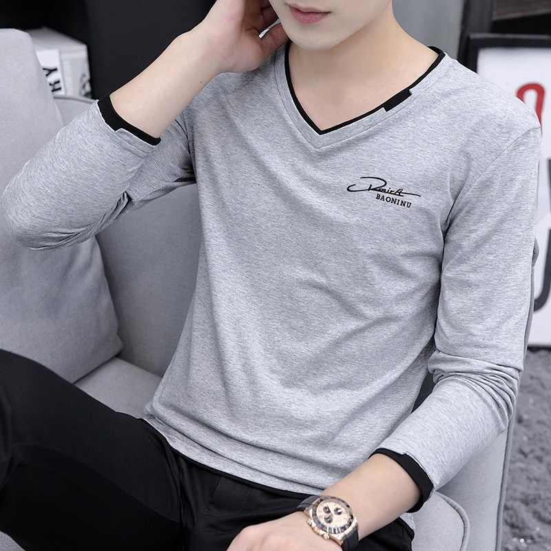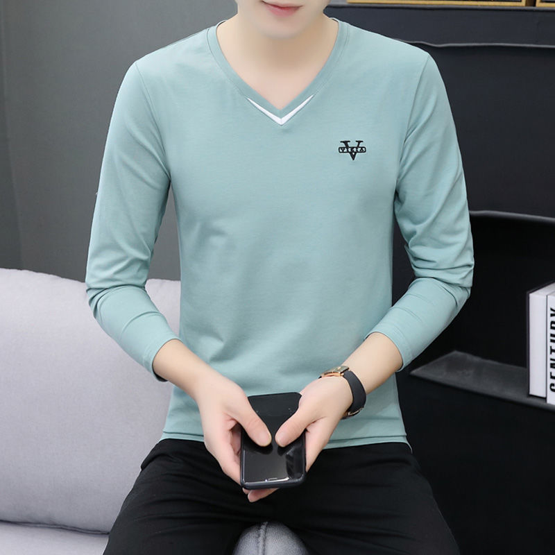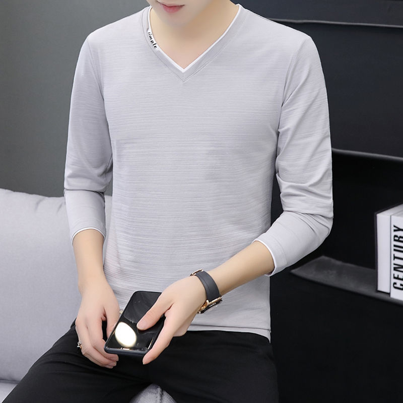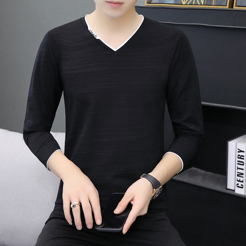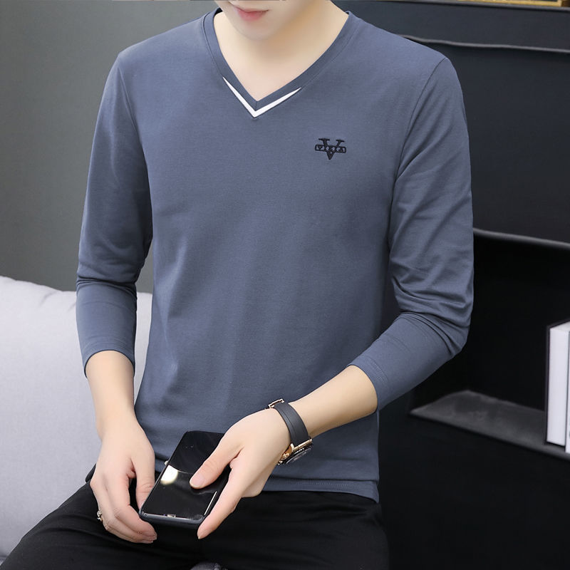 새로운 트렌디 한 긴팔 티셔츠 남자 가을 옷 가을 남자 최고면 베이스 셔츠 V-넥 셔츠 봄과 가을스토어 가기