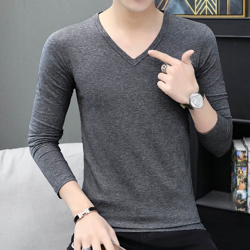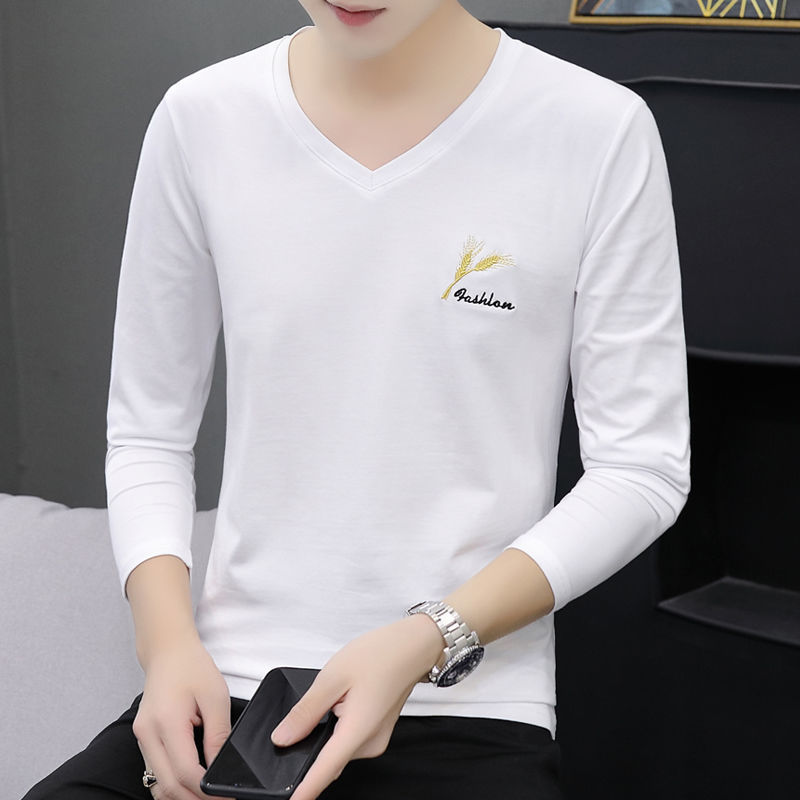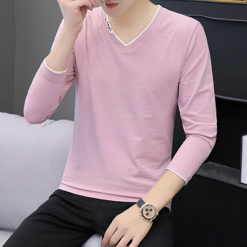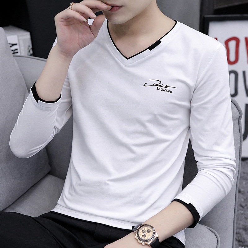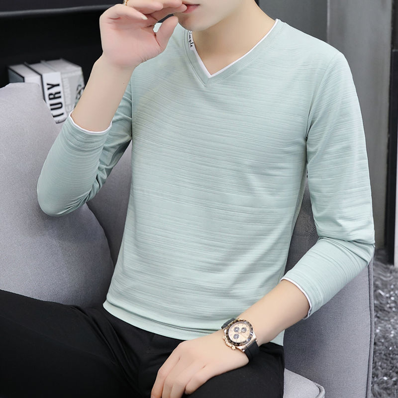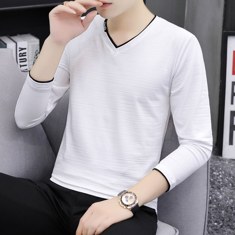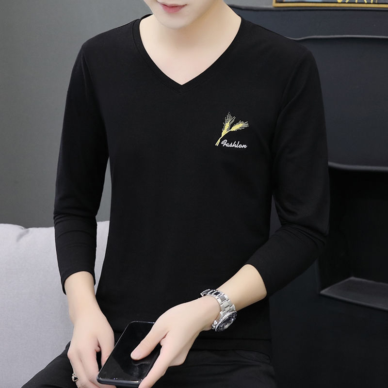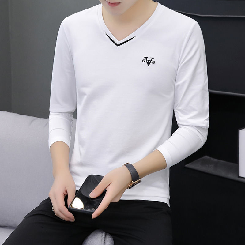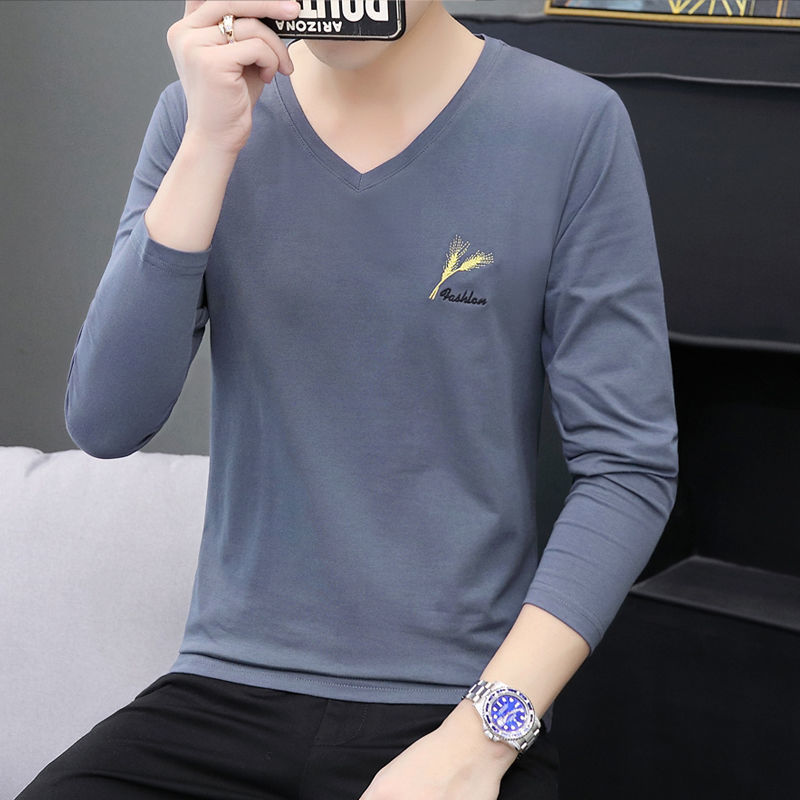 새로운 트렌디 한 긴팔 티셔츠 남자 가을 옷 가을 남자 최고면 베이스 셔츠 V-넥 셔츠 봄과 가을스토어 가기