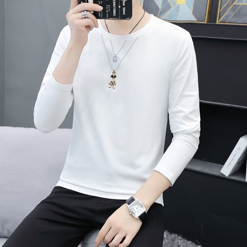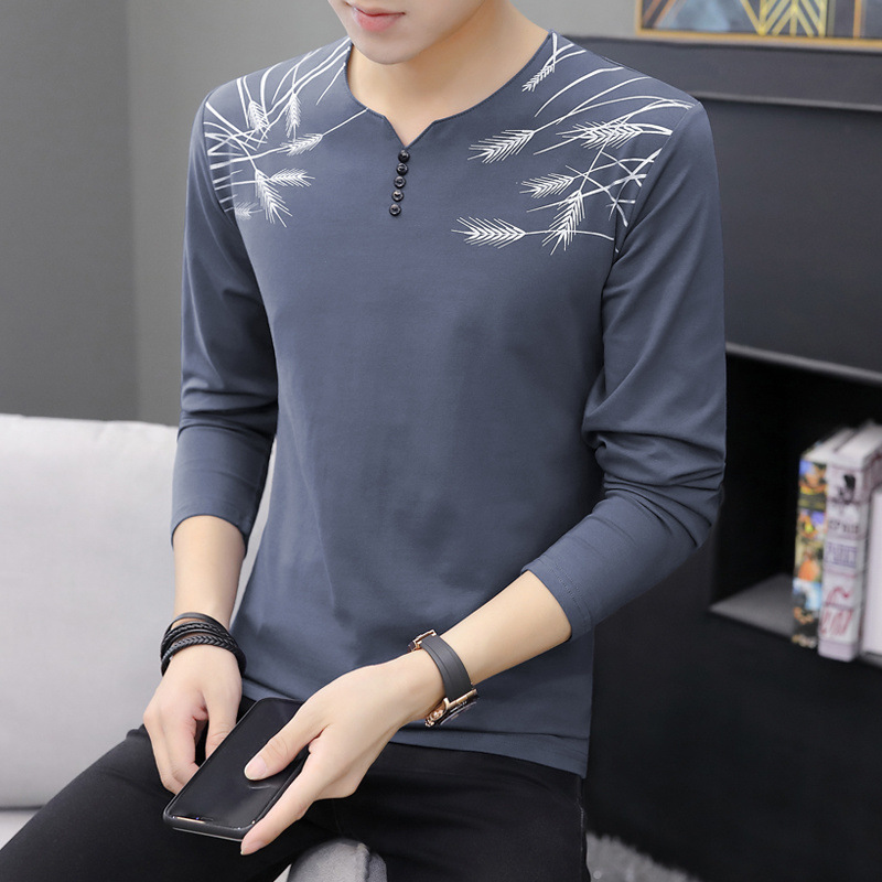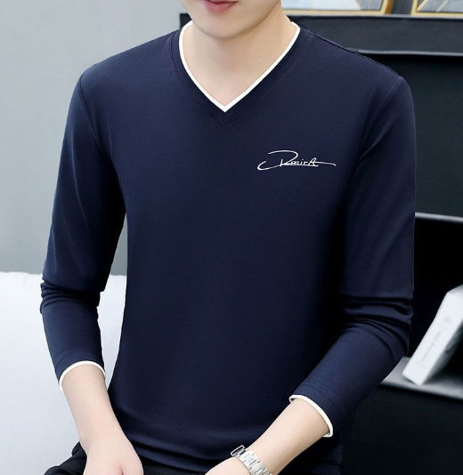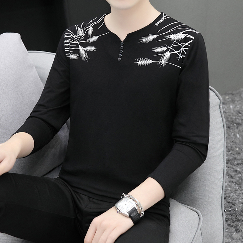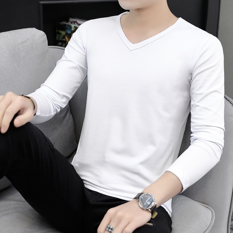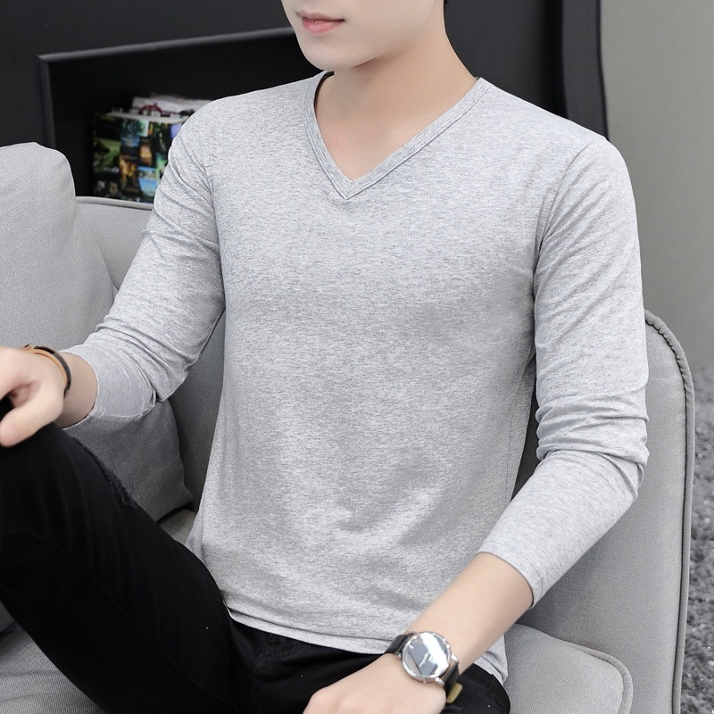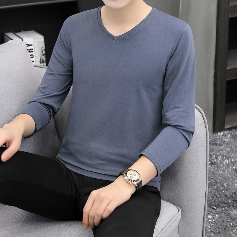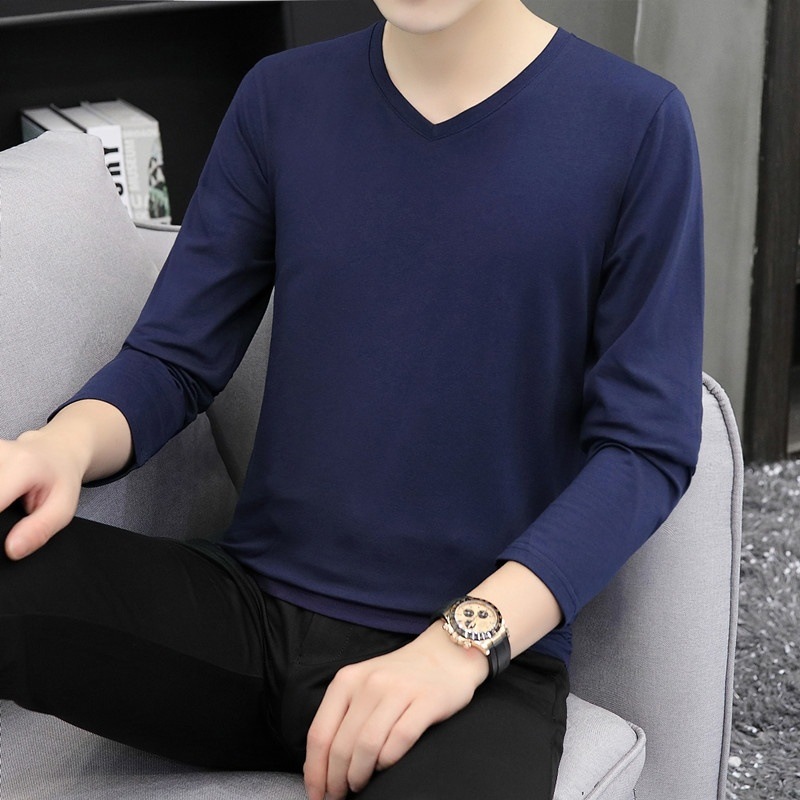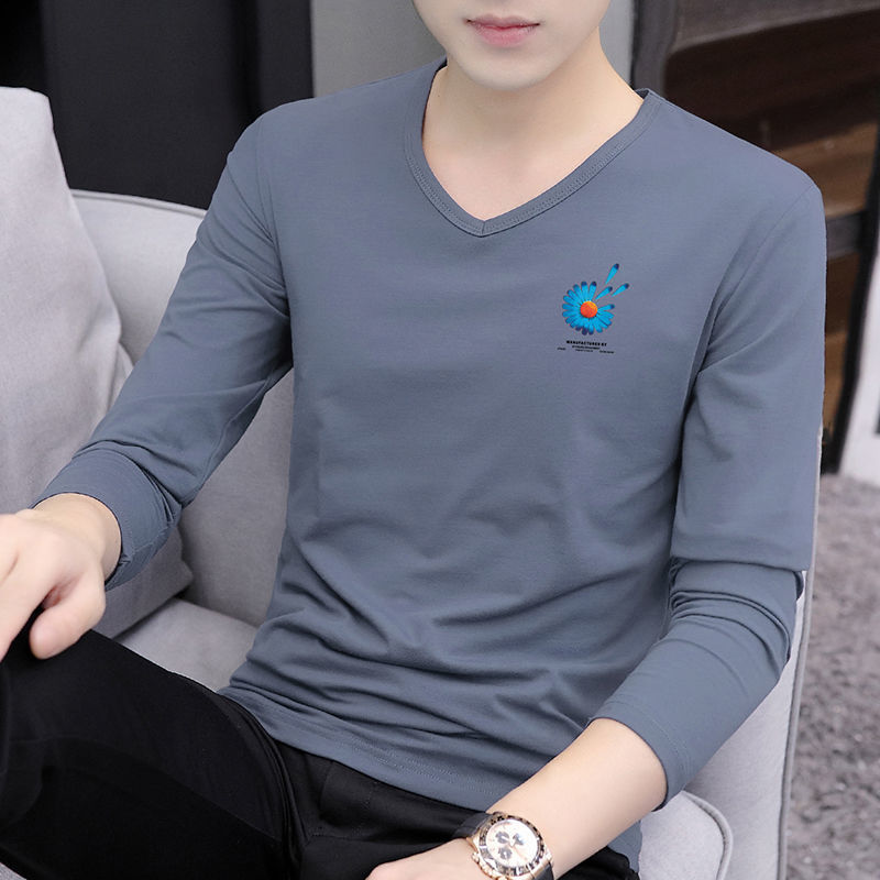 새로운 트렌디 한 긴팔 티셔츠 남자 가을 옷 가을 남자 최고면 베이스 셔츠 V-넥 셔츠 봄과 가을스토어 가기