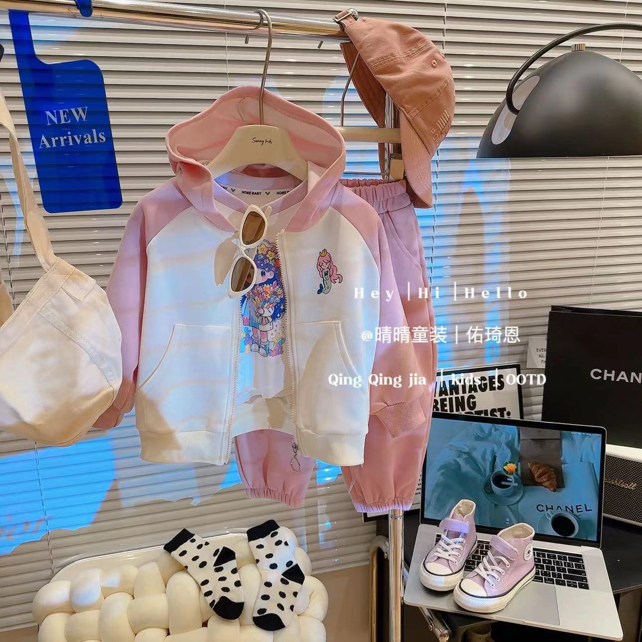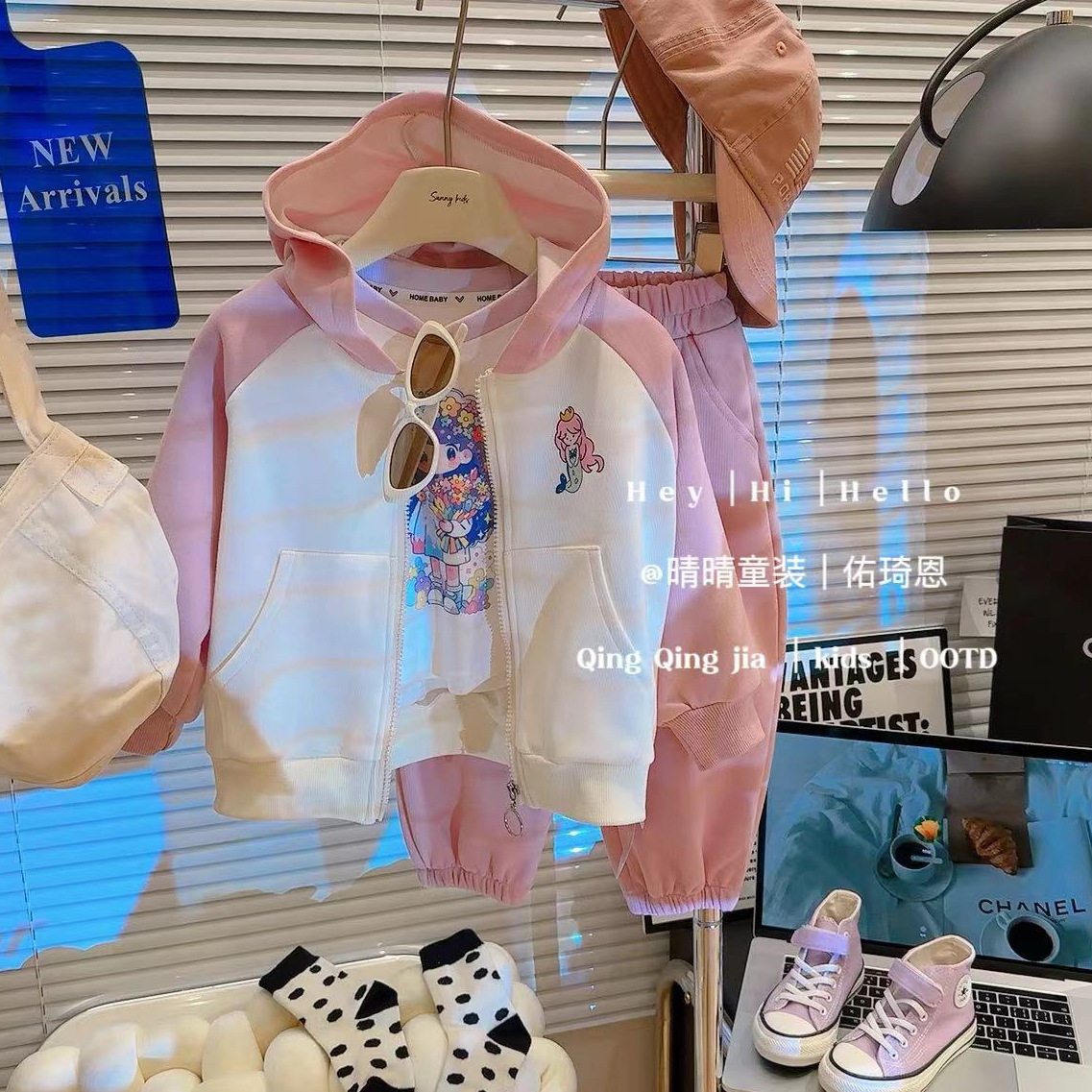 봄 소녀 유행 인어 세트 만화 새로운 어린이 서양식 재킷 캐주얼 후드 스포츠 투피스 세트스토어 가기