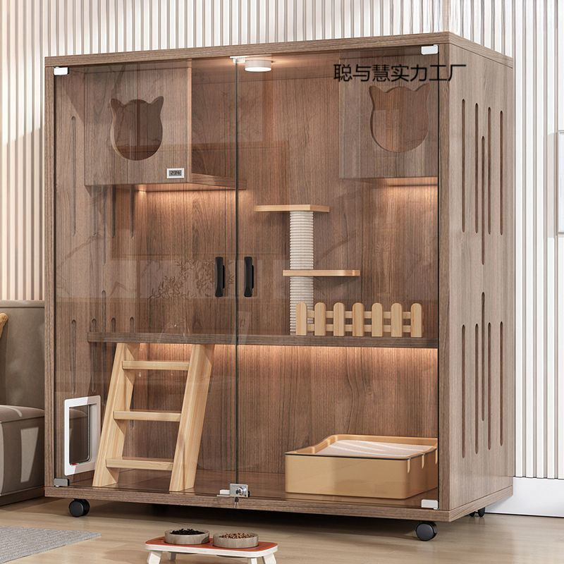 고양이 빌라 단단한 나무 슈퍼 큰 공간 고급 고양이 케이지 고양이 집 고양이 집 가정용 실내 고양이 집 고양이 집 고양이 둥지 고양이 캐비닛스토어 가기