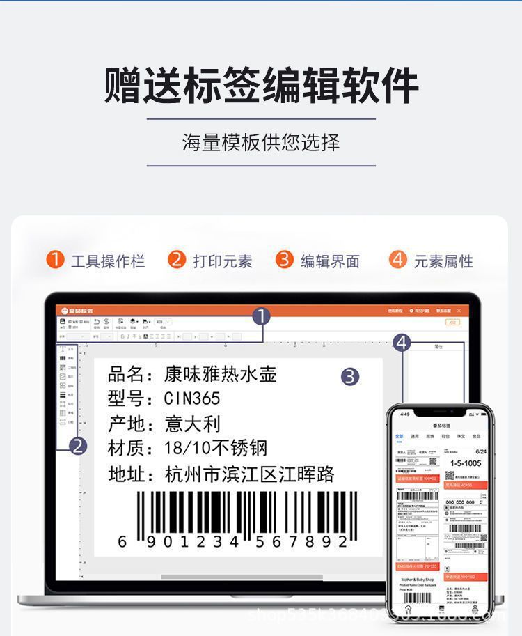 신예 XP-362B 라벨 용지 단면/양면 인쇄용 특수 전자 라벨, 바코드 프린터 연결 가능