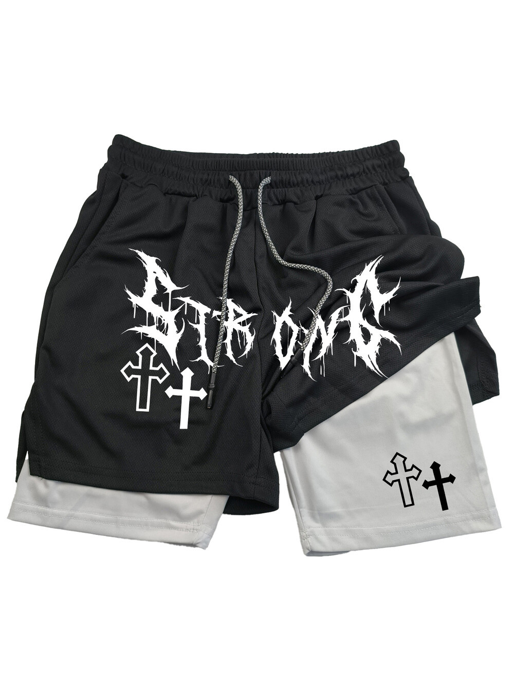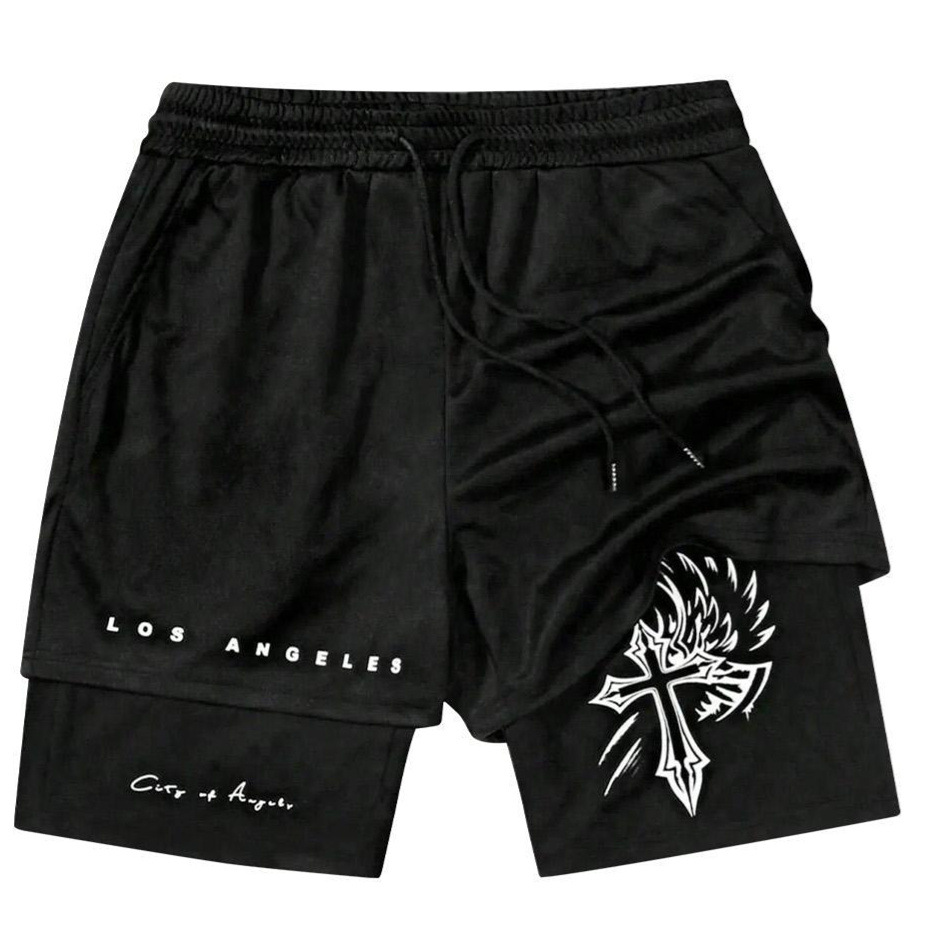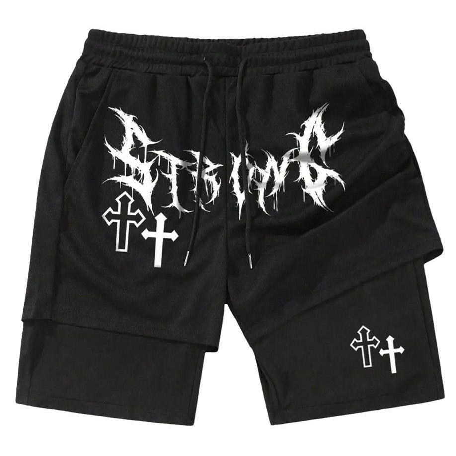 국경 간 무역 AliExpress 뜨거운 디지털 성격 인쇄 성인 더블 레이어 피트니스 스포츠 바지 캐주얼 반바지
