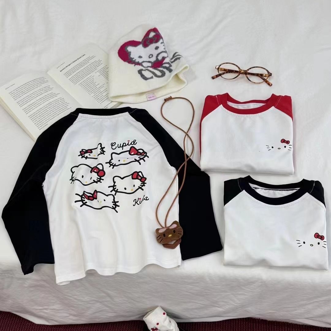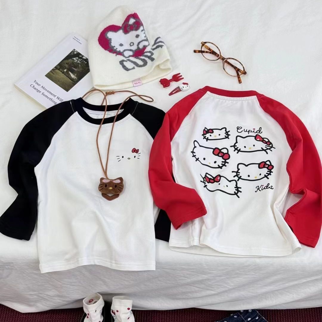 어린이 만화 인쇄 긴 소매 2025 봄 새로운 느슨한 아기 소녀 티셔츠 귀여운 인쇄 캐주얼 조커