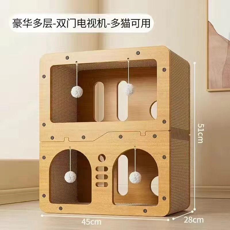 애완 고양이 스크래쳐, 내마모성, 부스러기 없는, 특대형 일체형 고양이 집, 다기능 고양이 빌라, 고양이 장난감 공, 고양이 소파스토어 가기