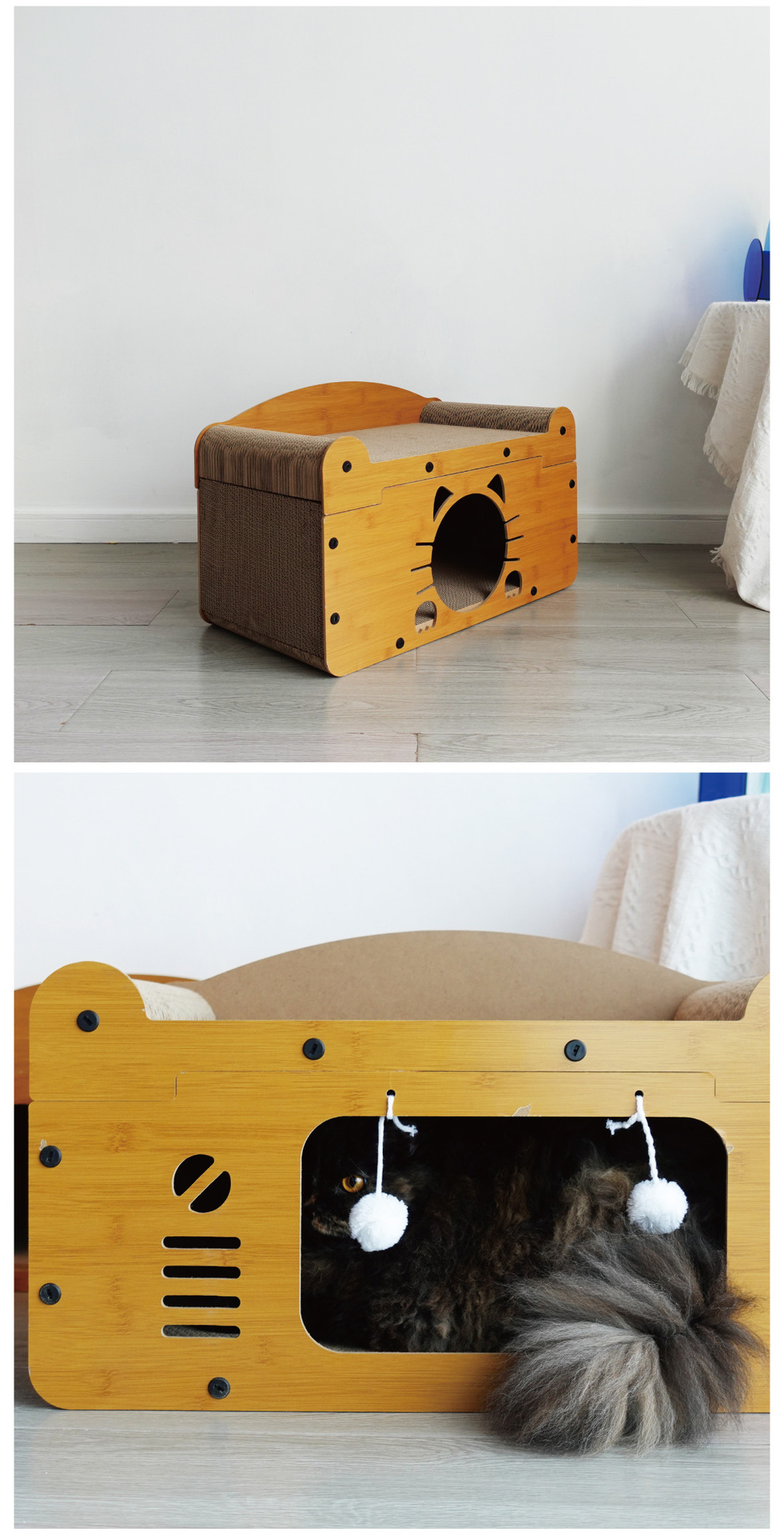 애완 고양이 스크래쳐, 내마모성, 부스러기 없는, 특대형 일체형 고양이 집, 다기능 고양이 빌라, 고양이 장난감 공, 고양이 소파