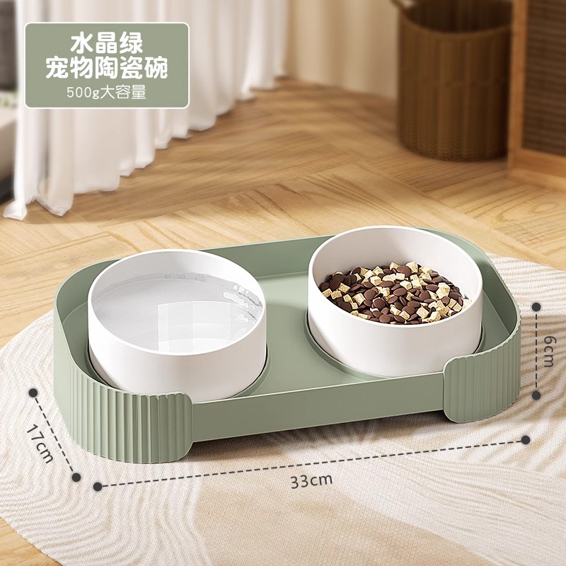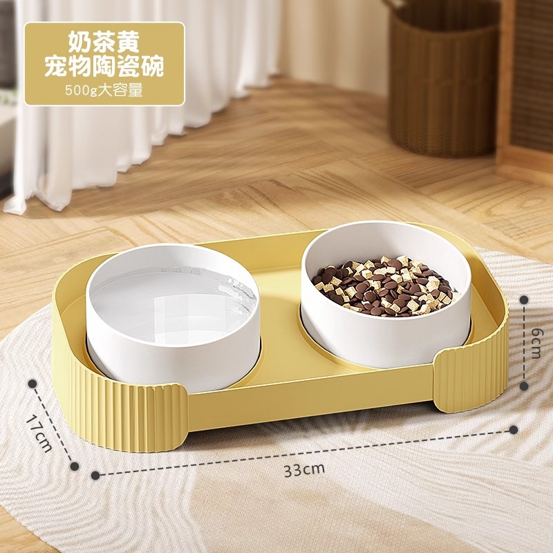 국경 간 간단한 애완 동물 그릇 고양이 음식 두 배 그릇 먹이 물 고양이 세라믹 그릇 안티 노크 목 보호 고양이 그릇 도매