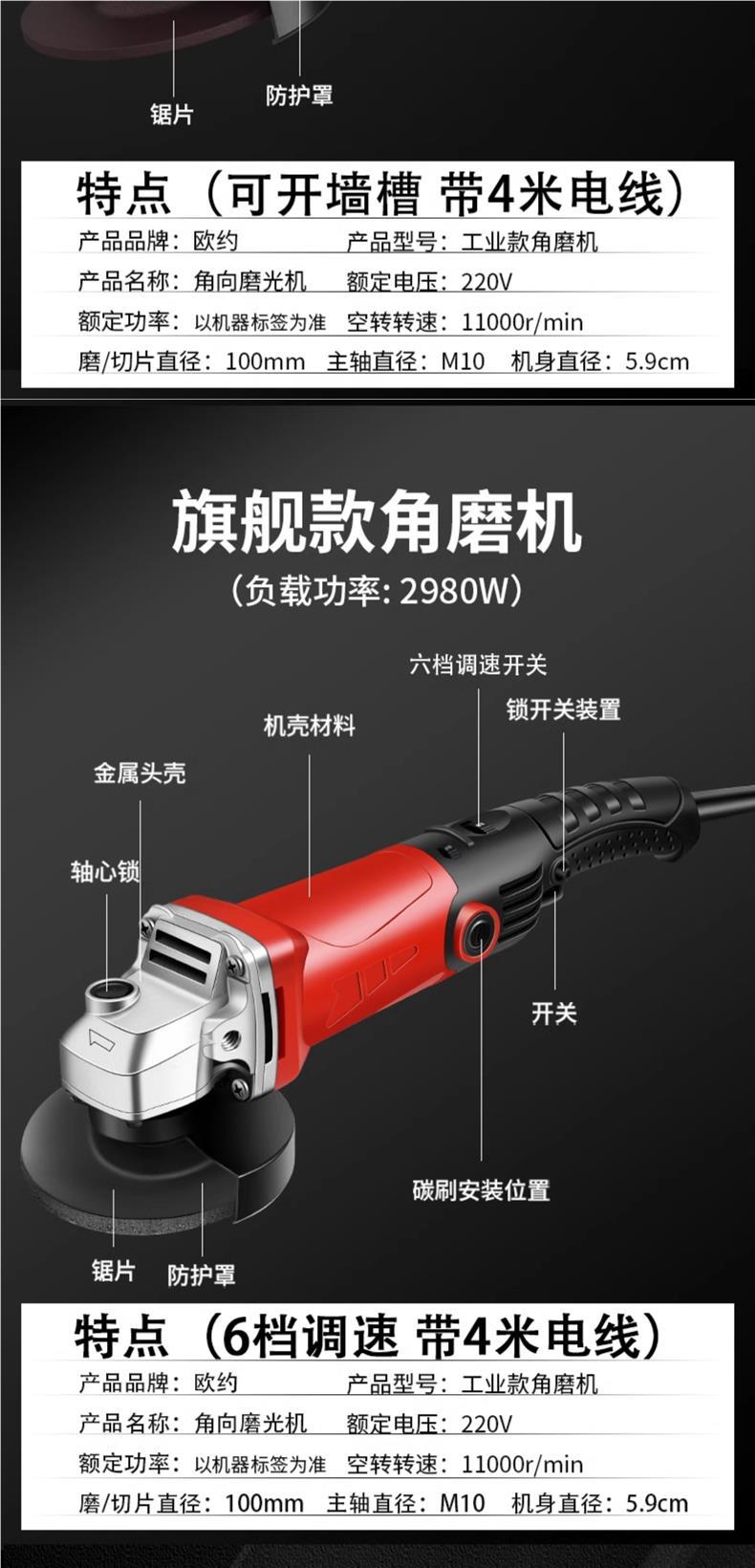 Ouyo 다기능 가정용 앵글 그라인더 샌딩 머신 전기 핸드 그라인딩 및 커팅 머신 전기 그라인딩 머신 핸드 헬드 폴리싱 머신