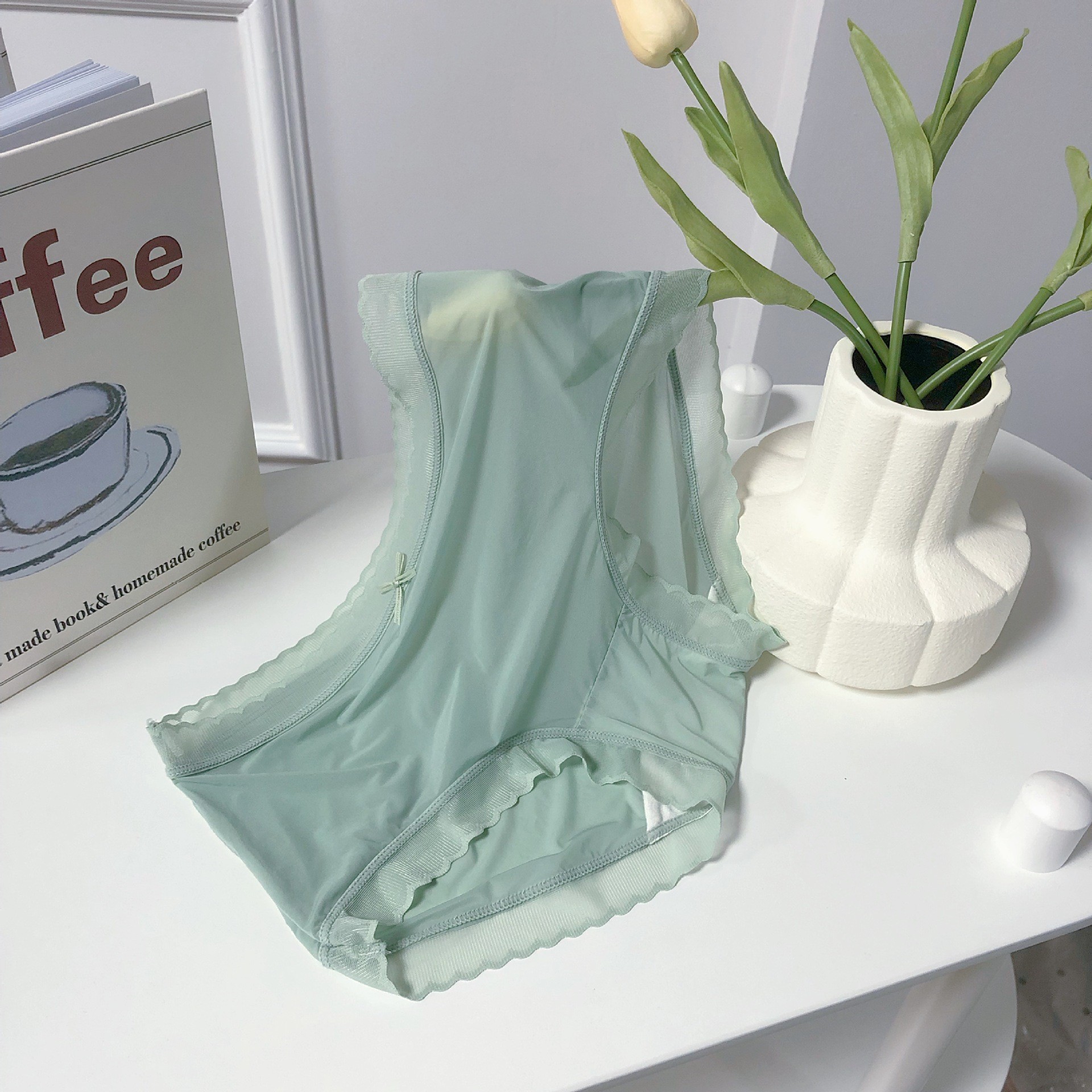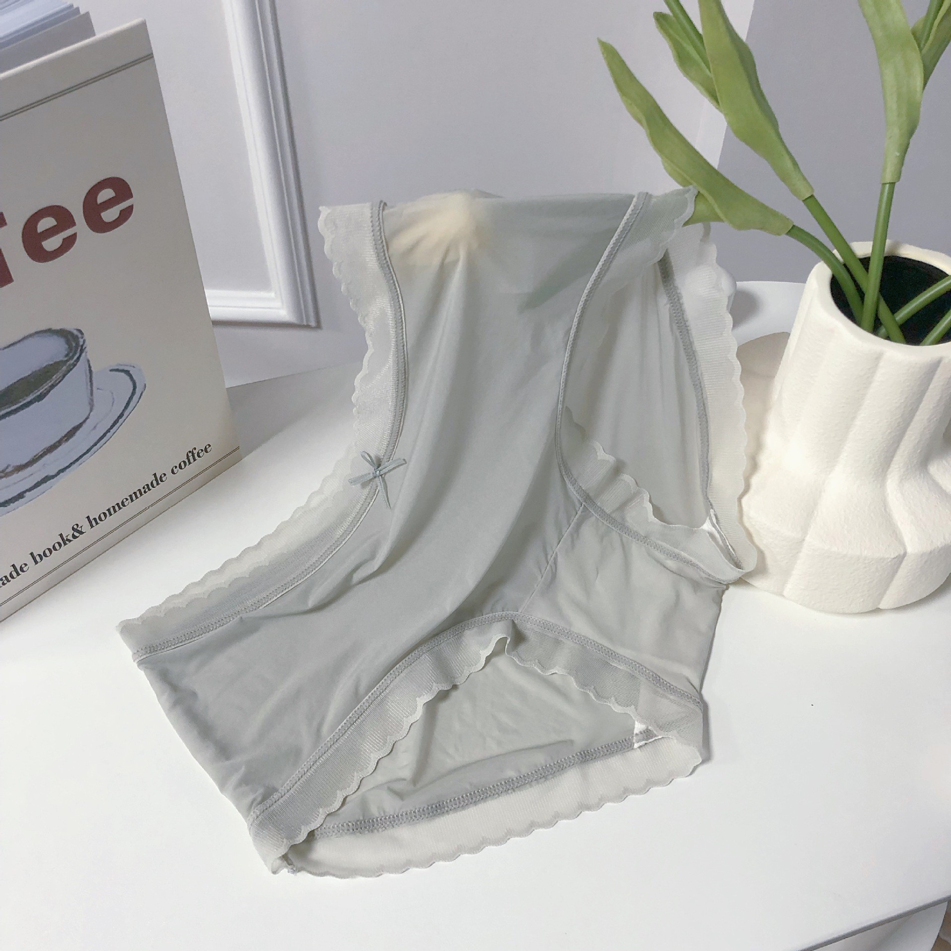 여름 얇은 추적없는 초박형 아이스 실크 통기성 에어 마스크 바지 여성용 빠른 건조 벌거 벗은 뽕나무 실크 크로트 브리프