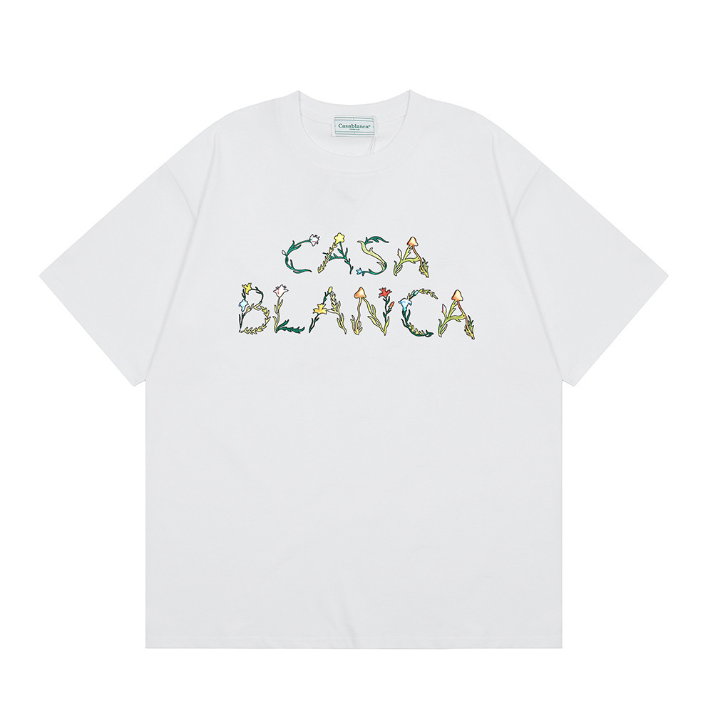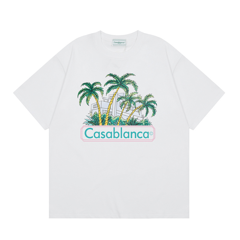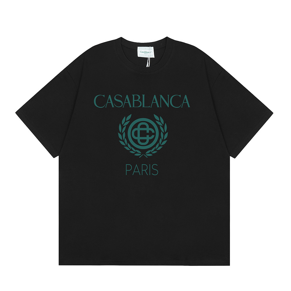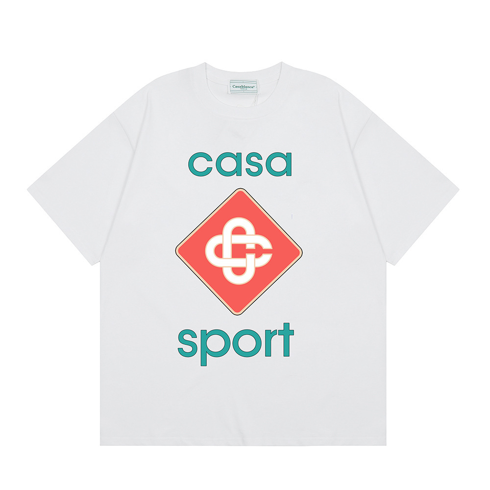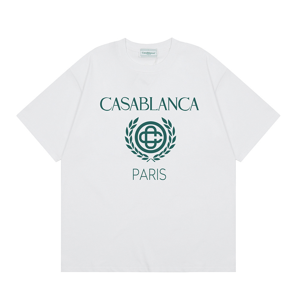 국경 간 카사 블랑카 여름 새로운 카사 블랑카 로고 인쇄 남성과 여성의 느슨한 반팔 티셔츠 트렌디스토어 가기