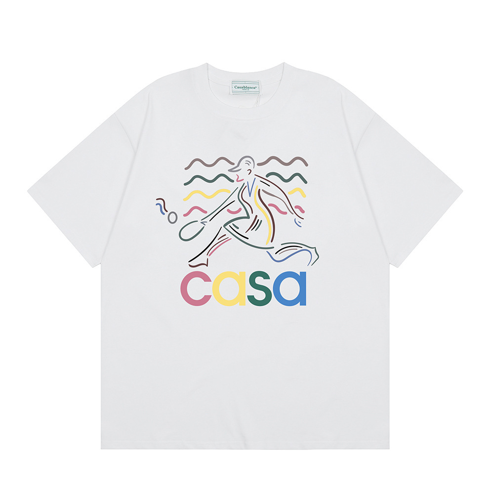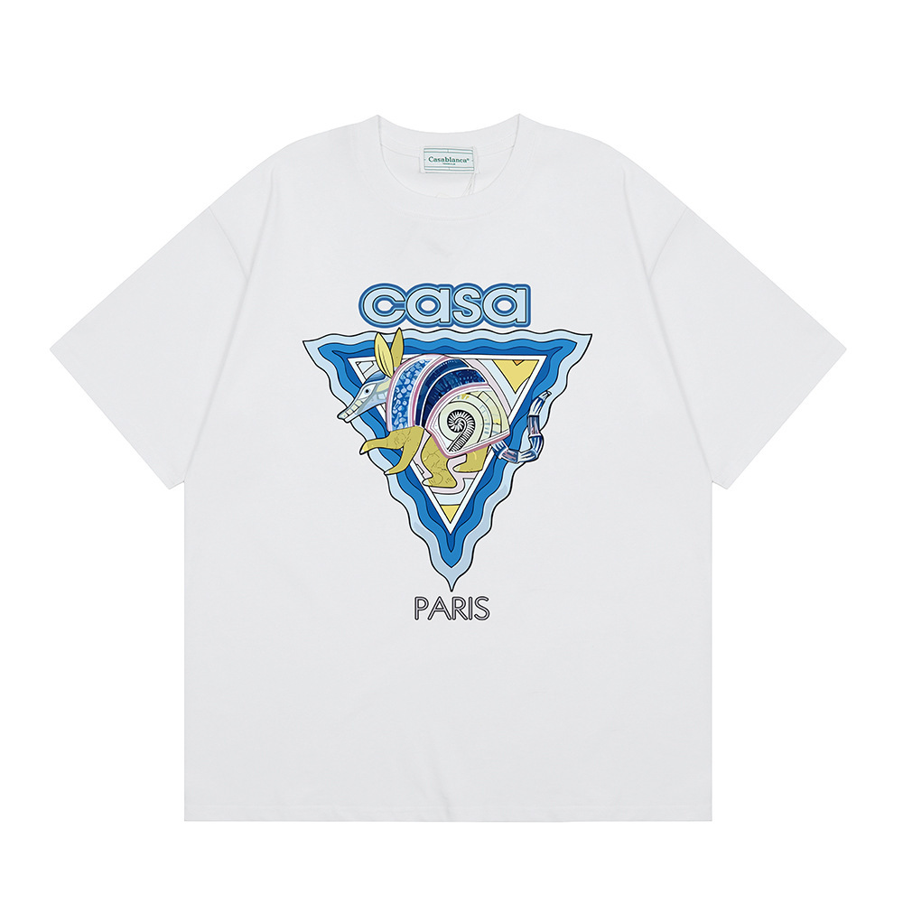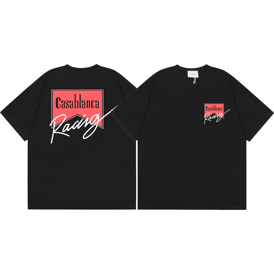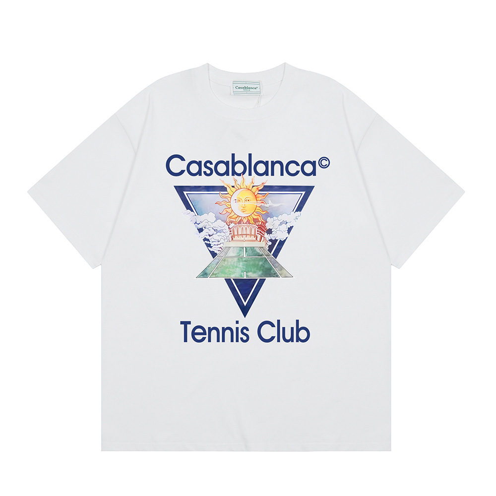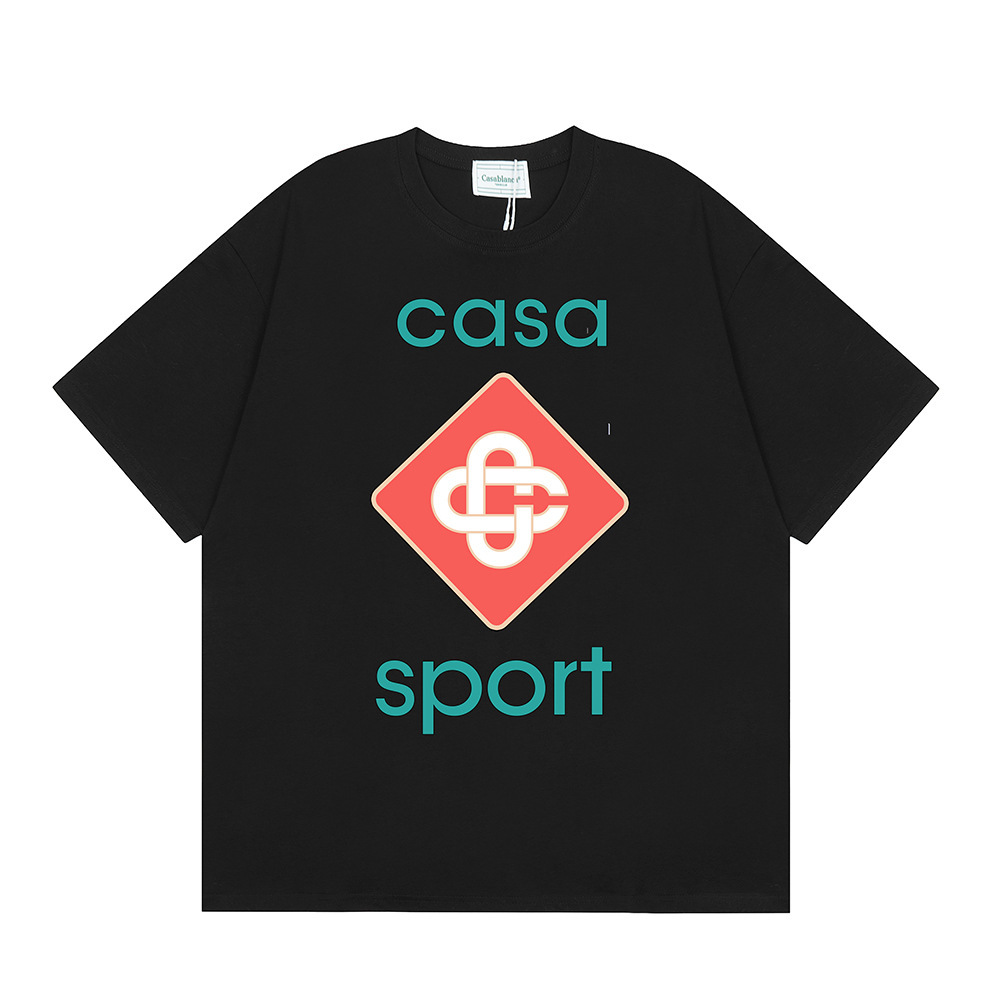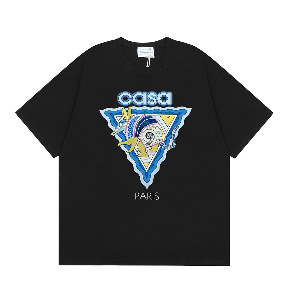 국경 간 카사 블랑카 여름 새로운 카사 블랑카 로고 인쇄 남성과 여성의 느슨한 반팔 티셔츠 트렌디스토어 가기