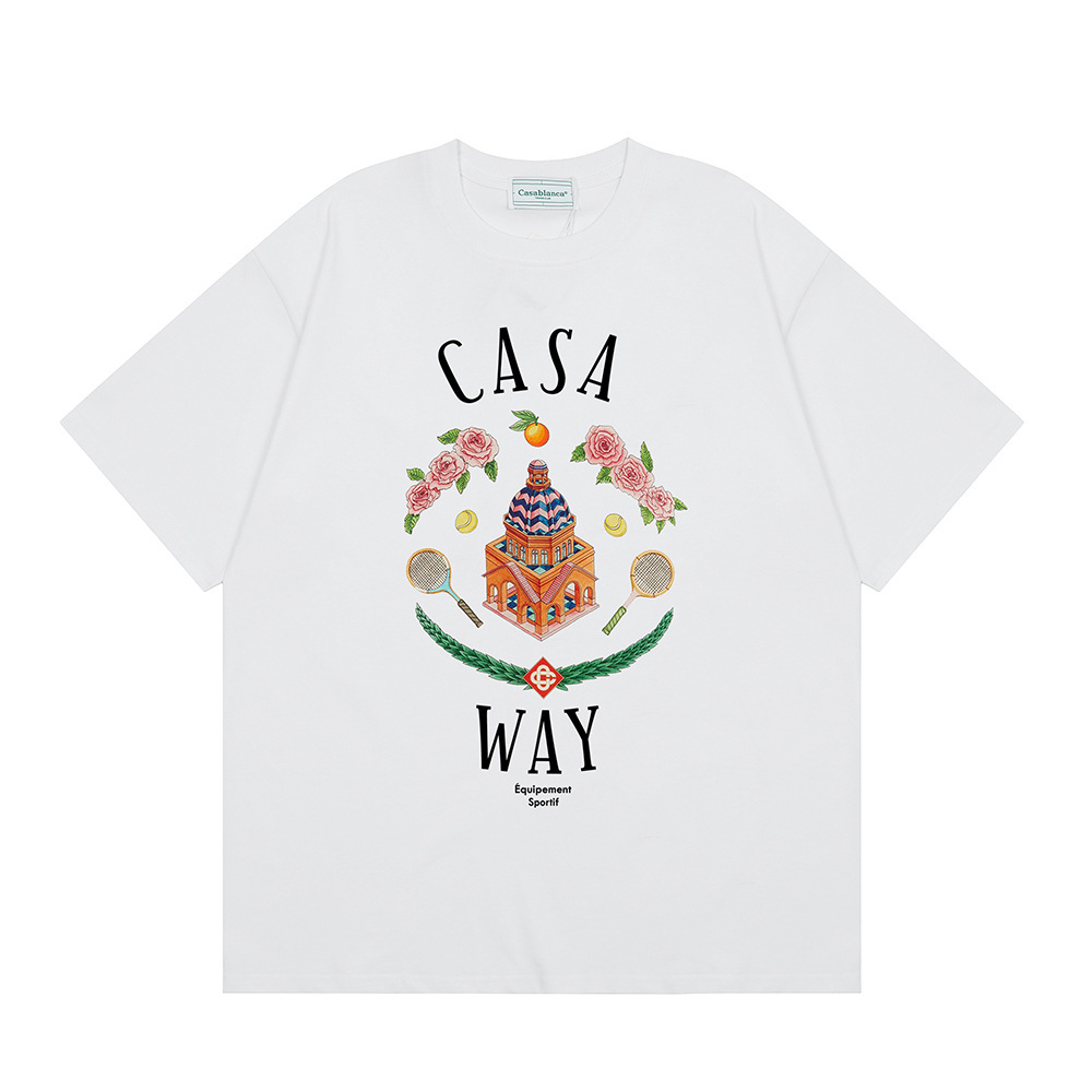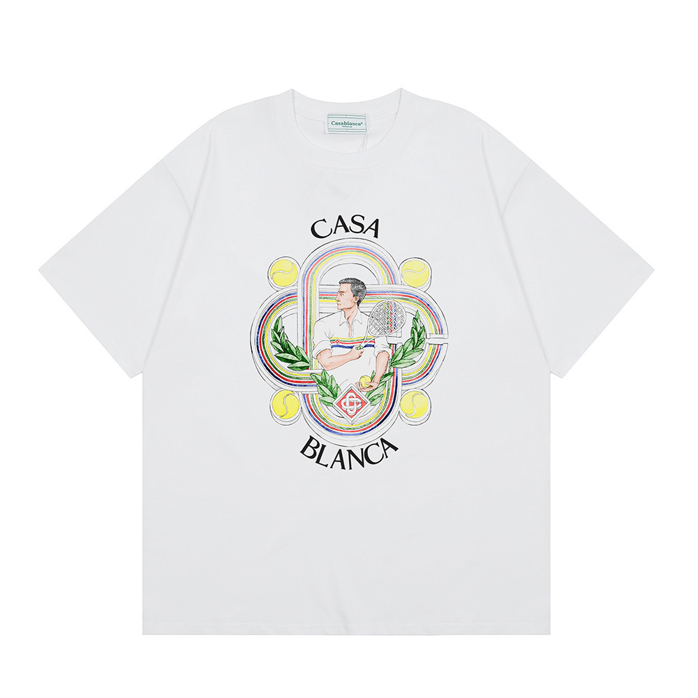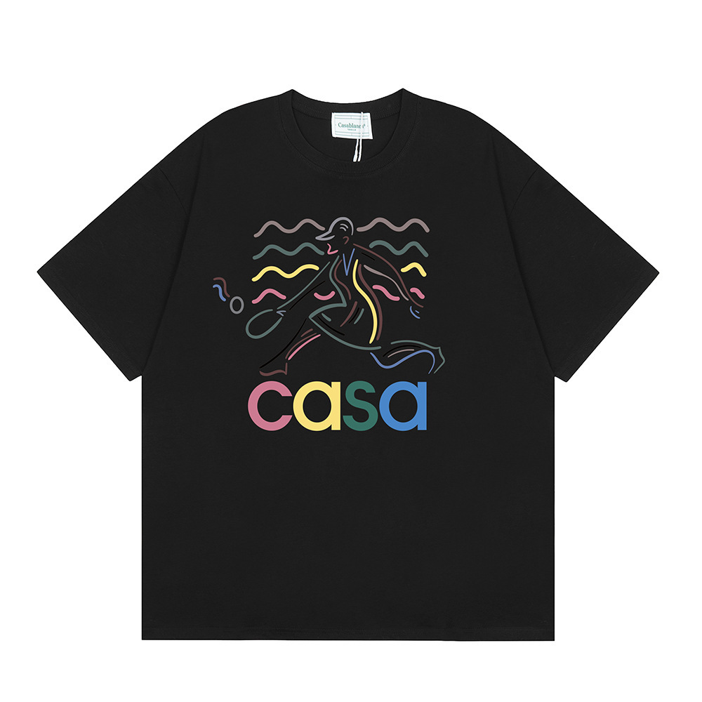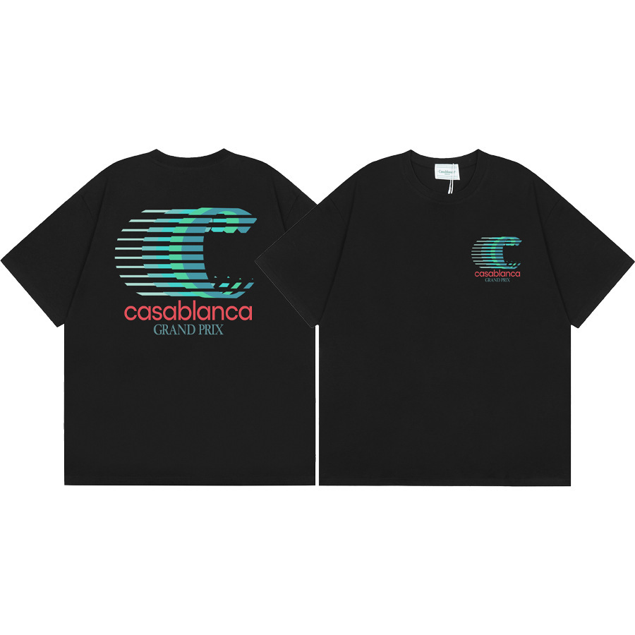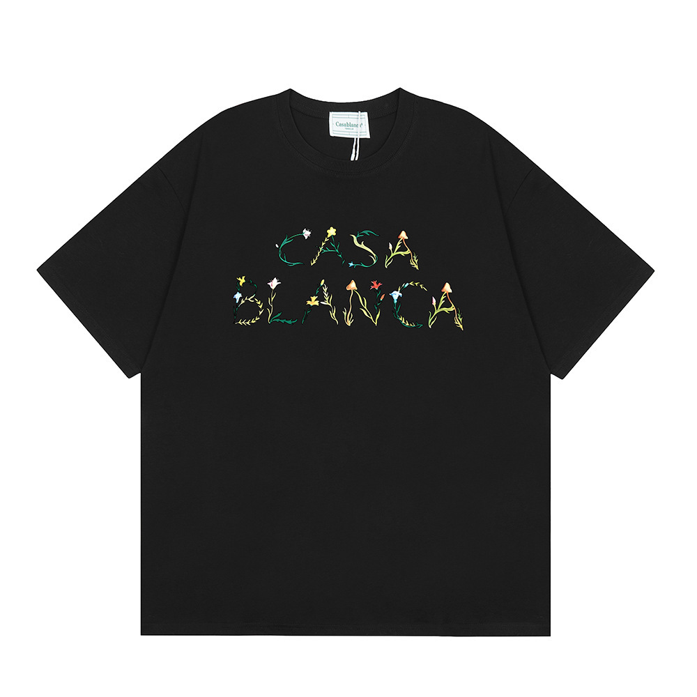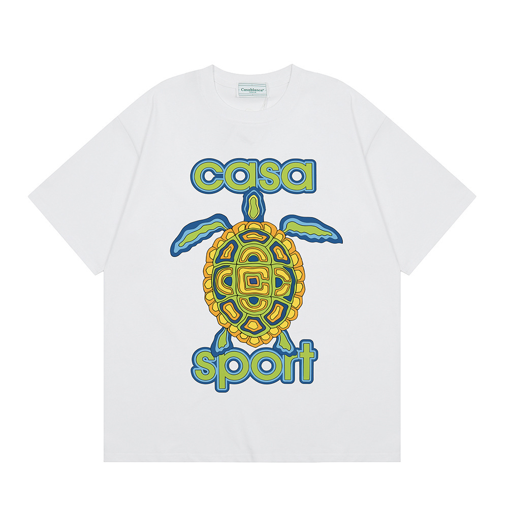 국경 간 카사 블랑카 여름 새로운 카사 블랑카 로고 인쇄 남성과 여성의 느슨한 반팔 티셔츠 트렌디스토어 가기