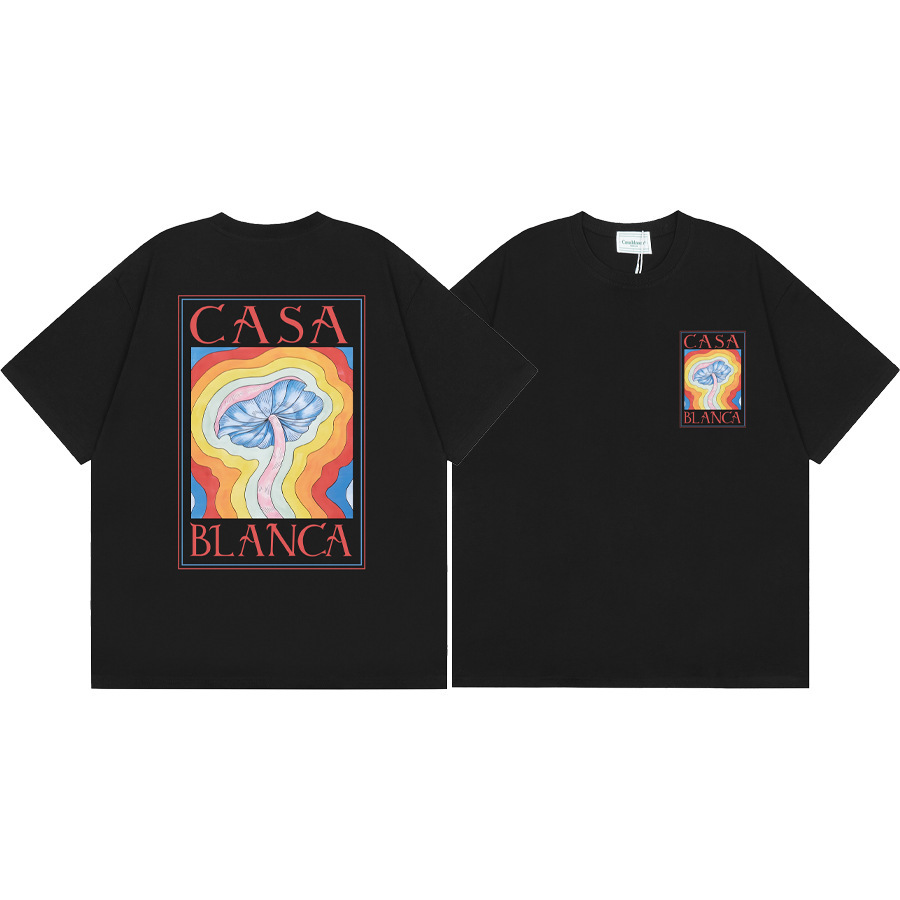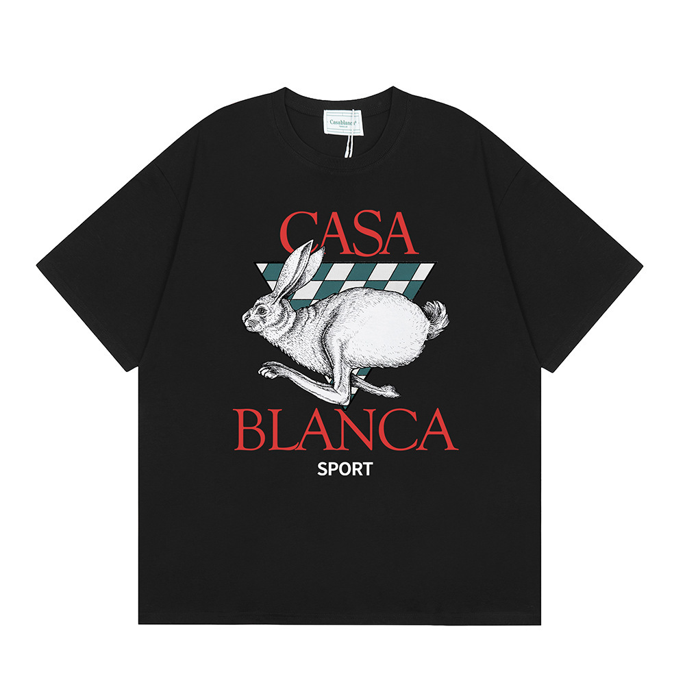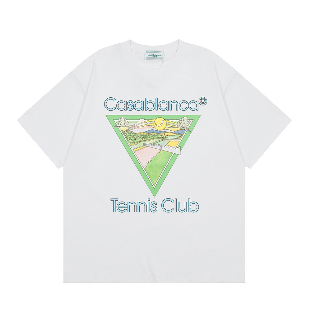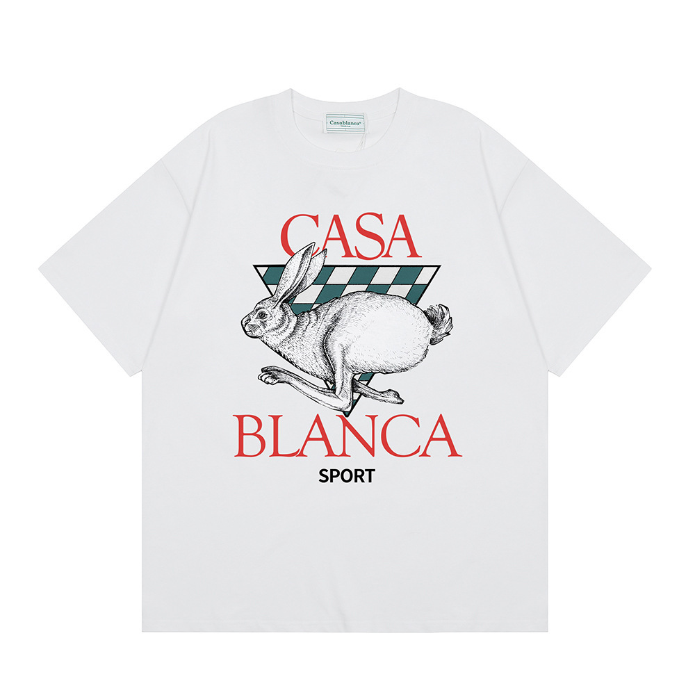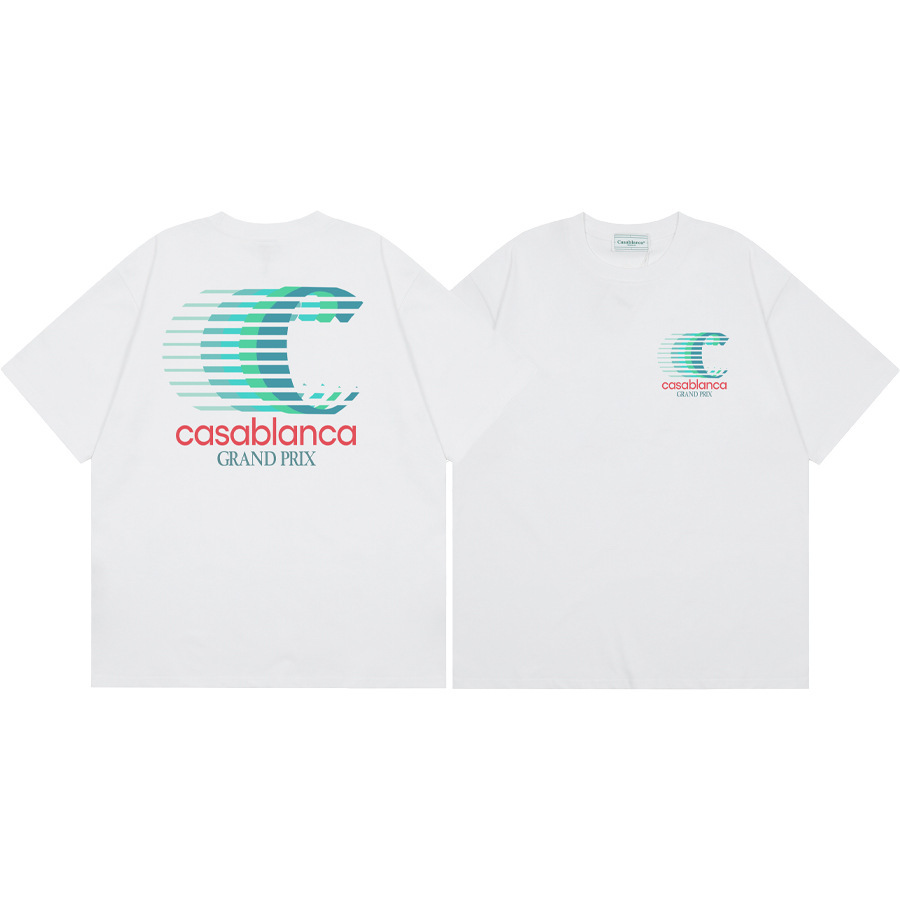 국경 간 카사 블랑카 여름 새로운 카사 블랑카 로고 인쇄 남성과 여성의 느슨한 반팔 티셔츠 트렌디스토어 가기