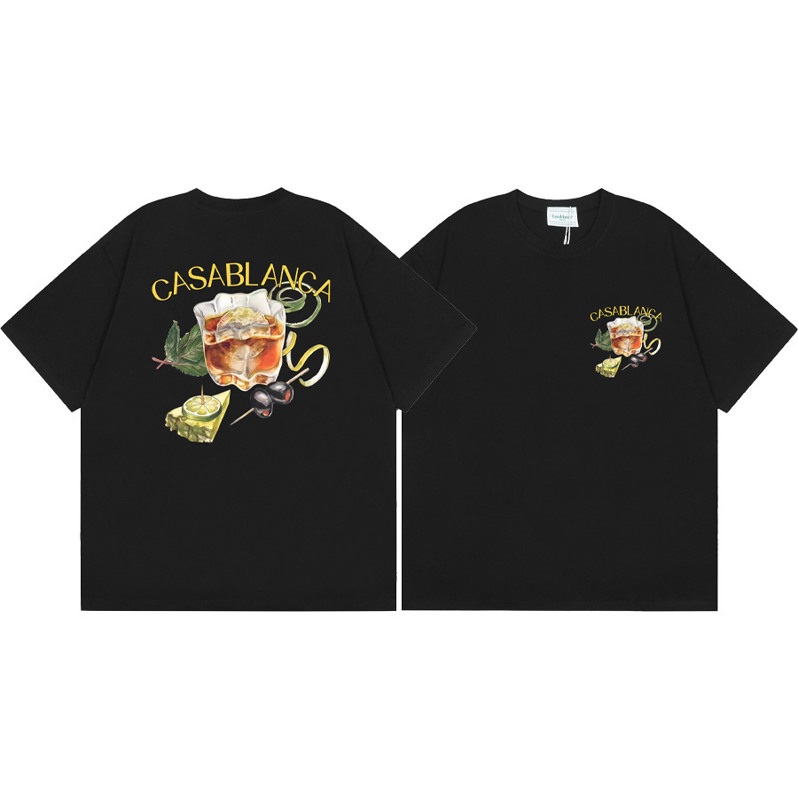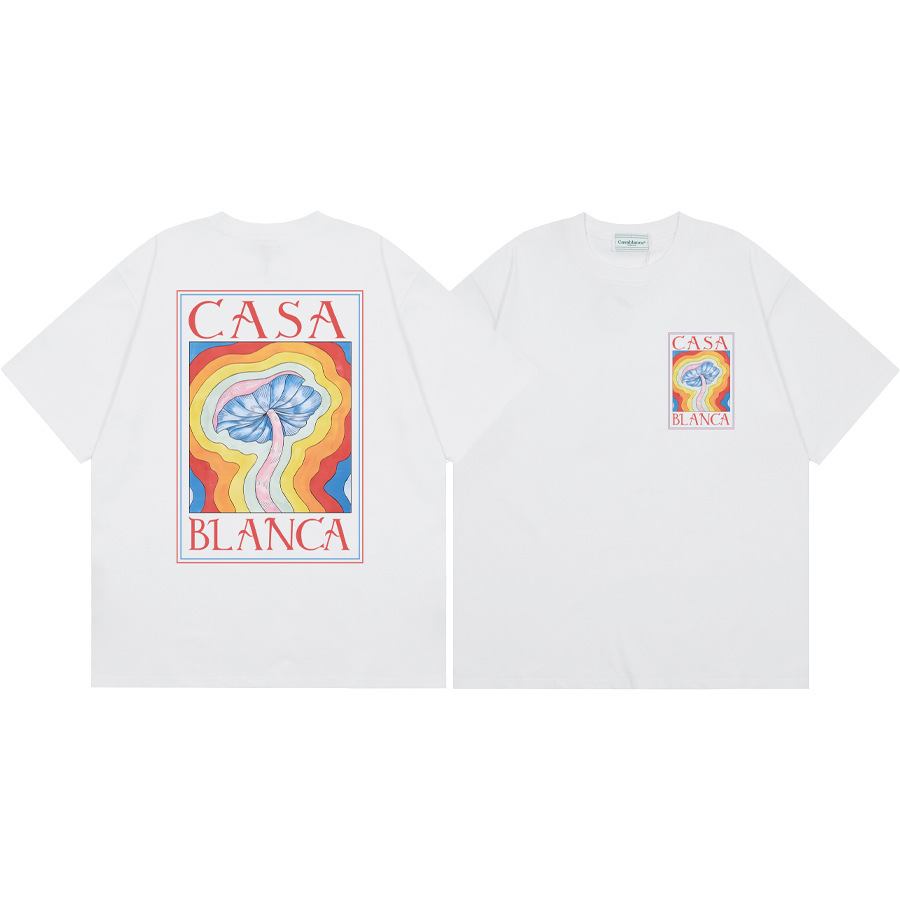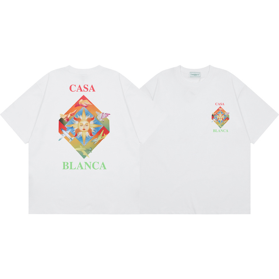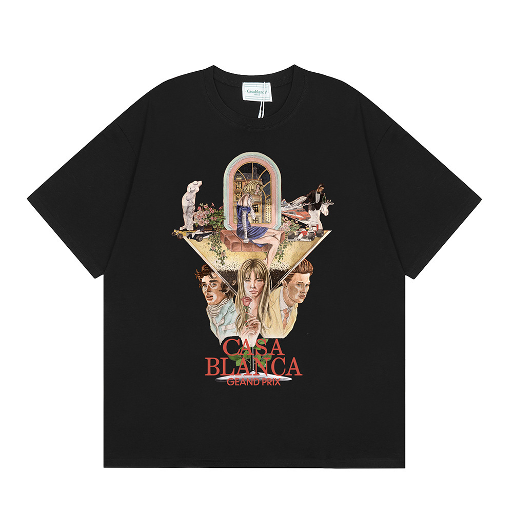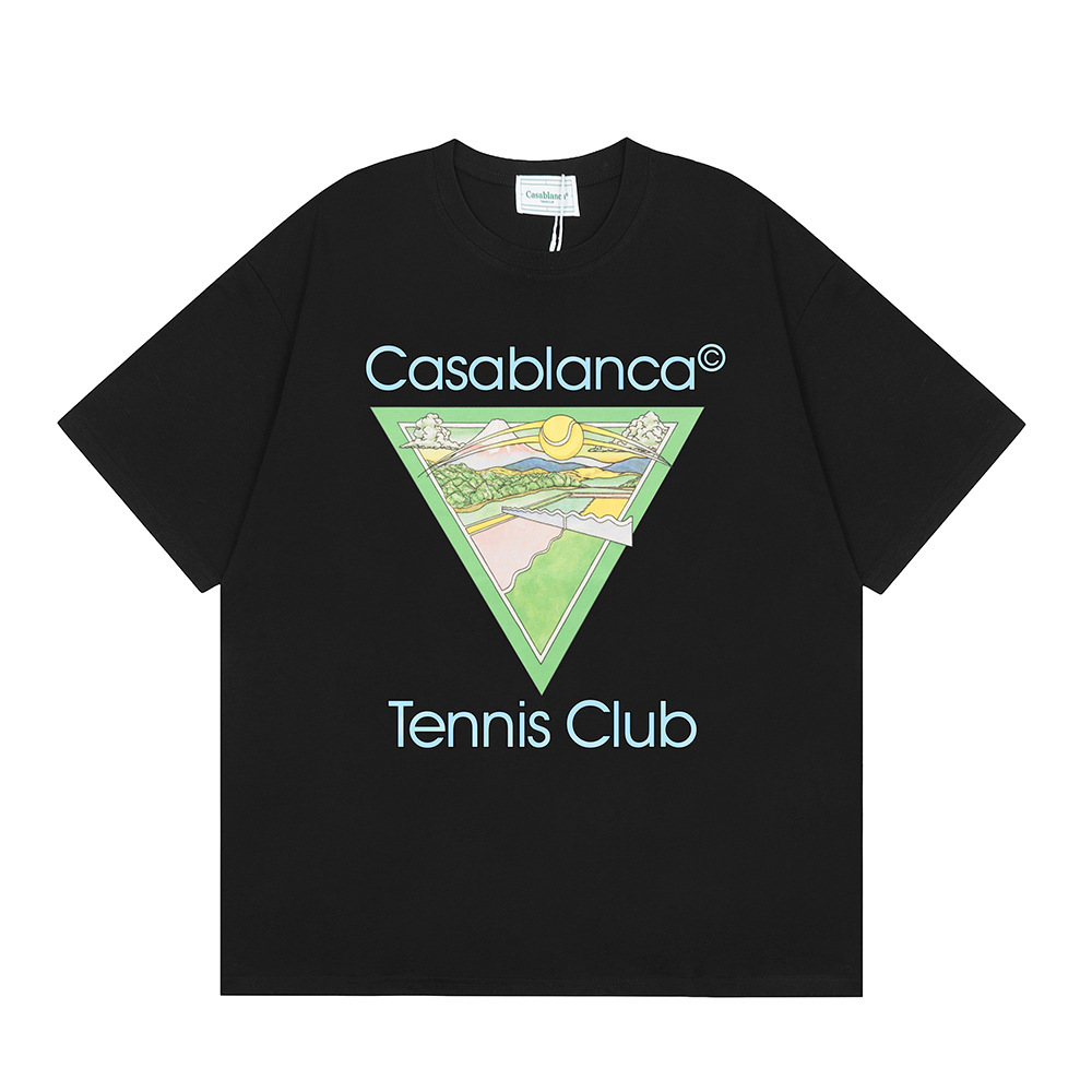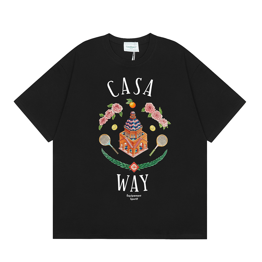 국경 간 카사 블랑카 여름 새로운 카사 블랑카 로고 인쇄 남성과 여성의 느슨한 반팔 티셔츠 트렌디스토어 가기