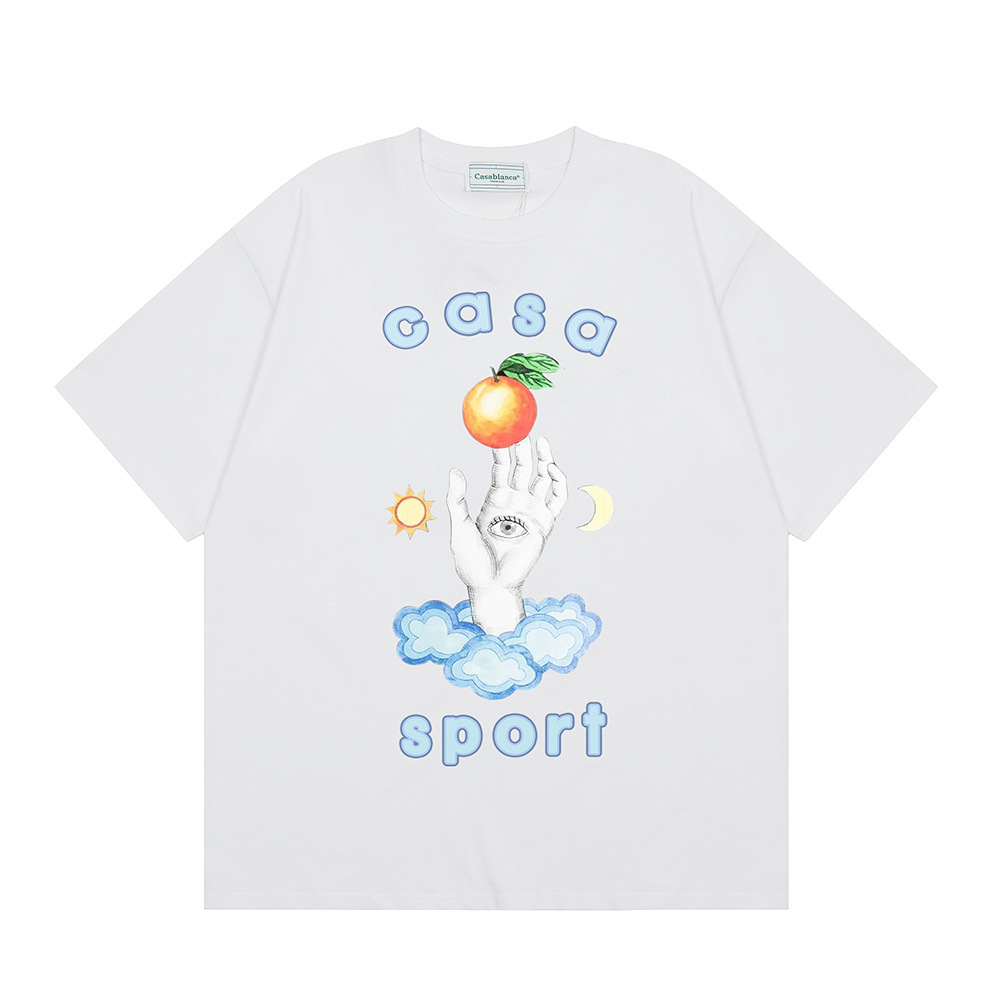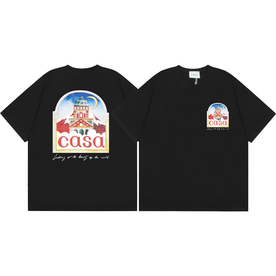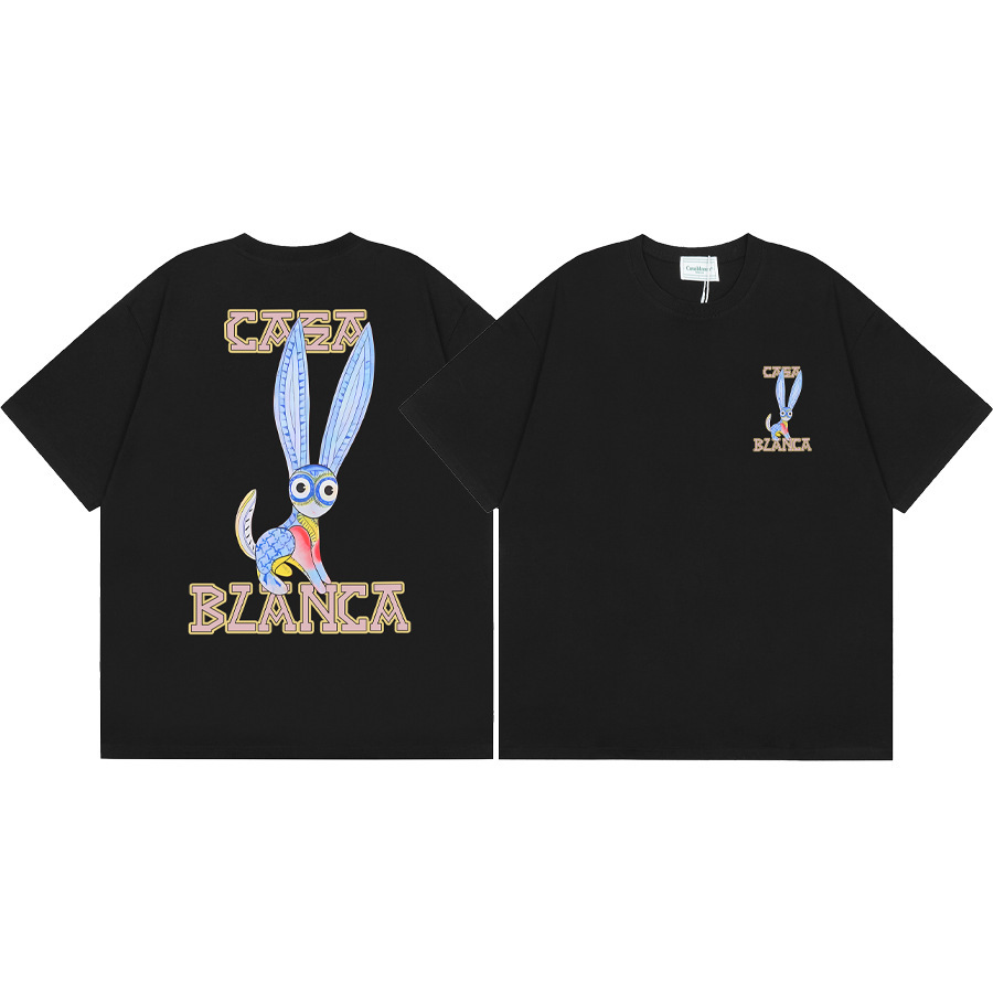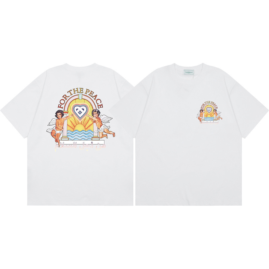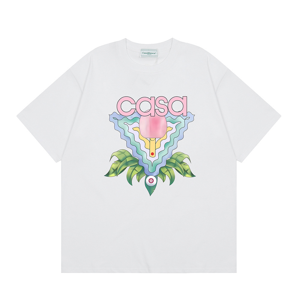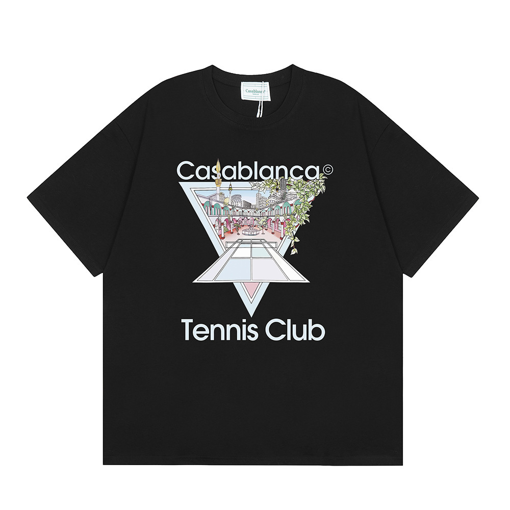국경 간 카사 블랑카 여름 새로운 카사 블랑카 로고 인쇄 남성과 여성의 느슨한 반팔 티셔츠 트렌디스토어 가기