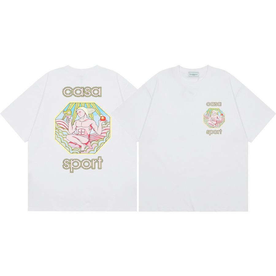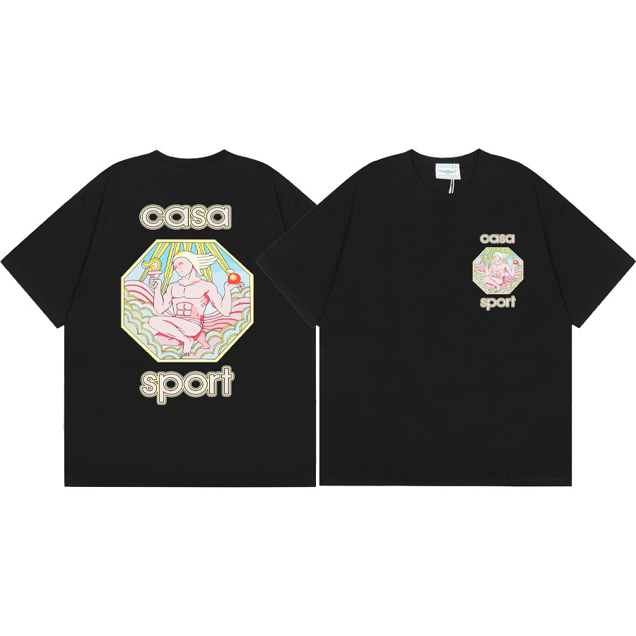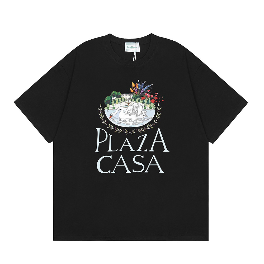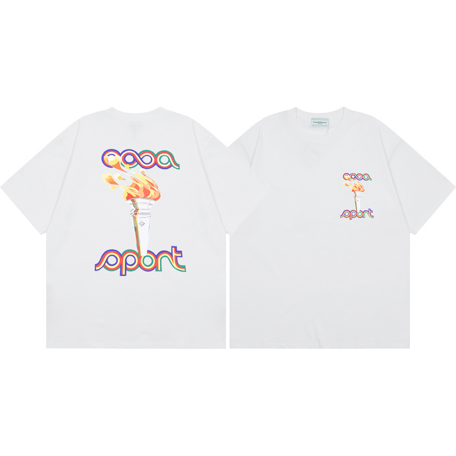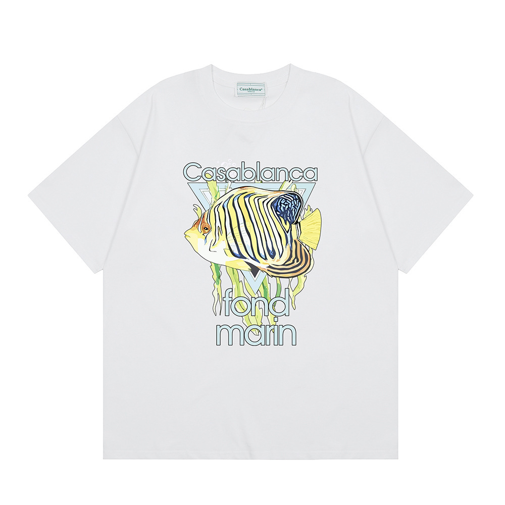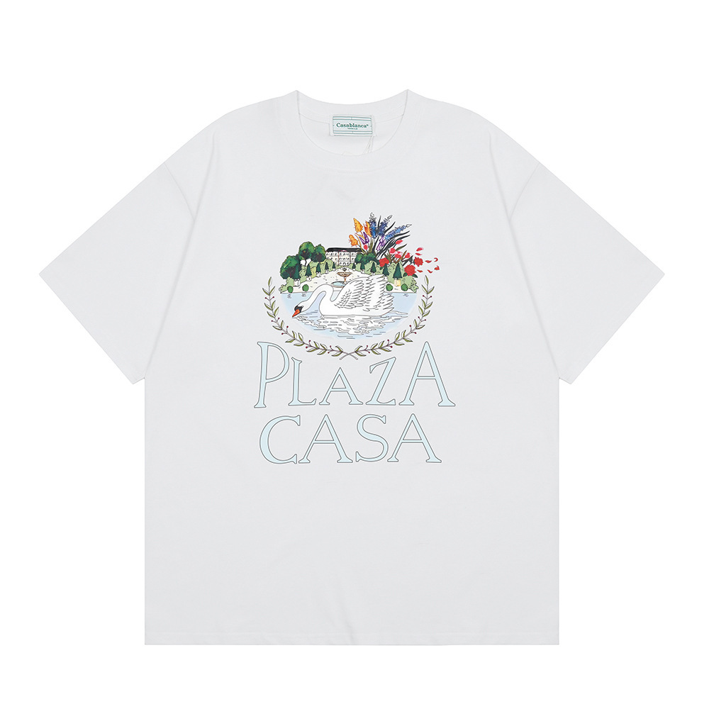 국경 간 카사 블랑카 여름 새로운 카사 블랑카 로고 인쇄 남성과 여성의 느슨한 반팔 티셔츠 트렌디스토어 가기