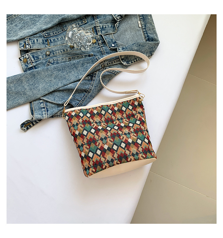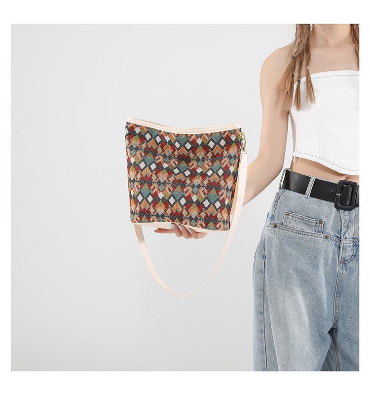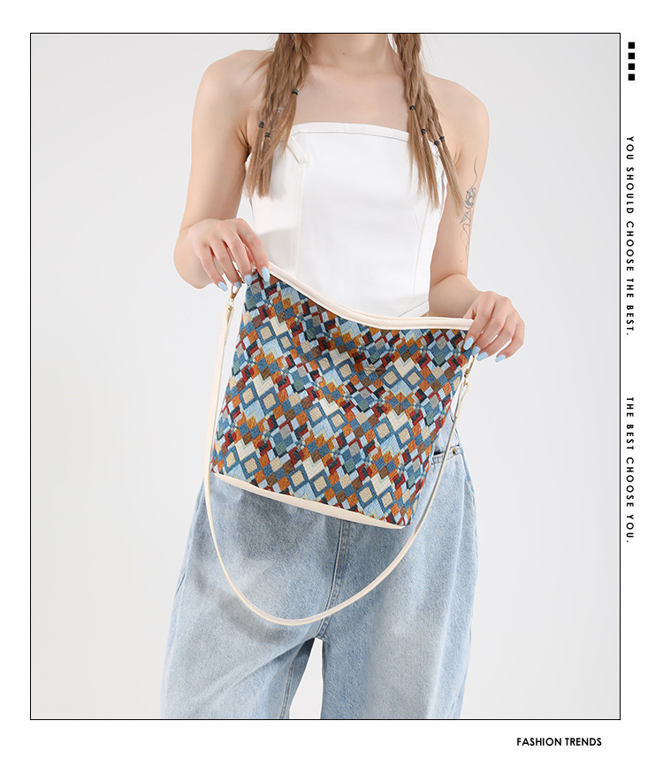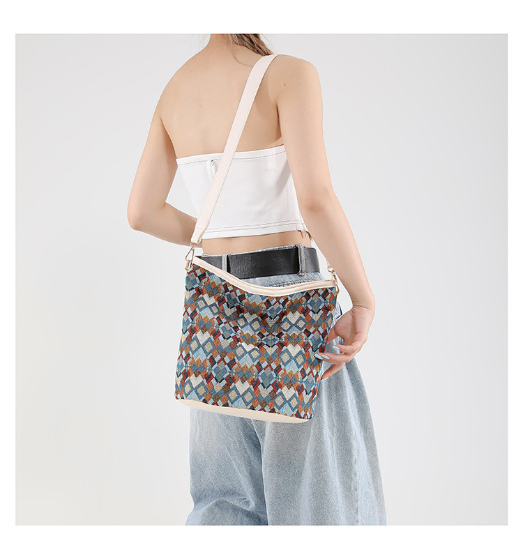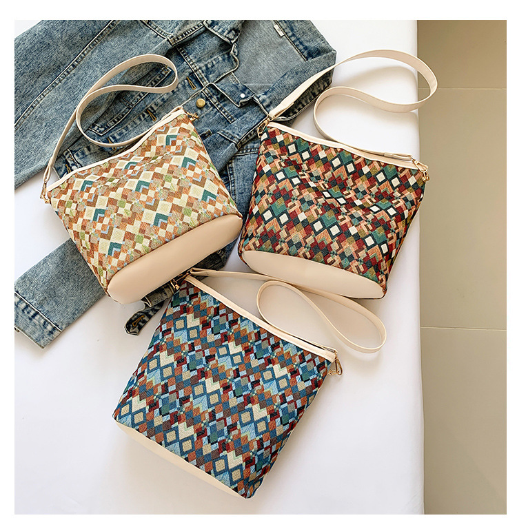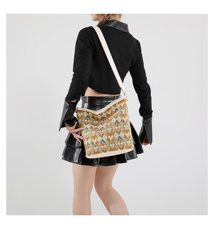유럽과 미국의 레트로 버킷 백 2025 새로운 컬러 콘트라스트 통근 가방 트렌디 여성 패션 아방가르드 경량 어깨 크로스 바디 백