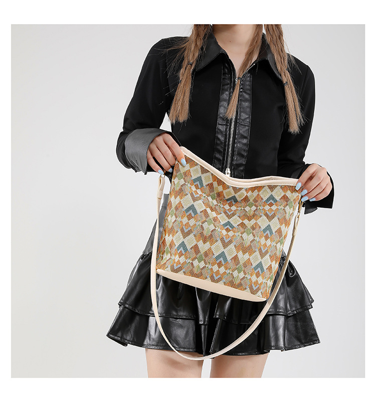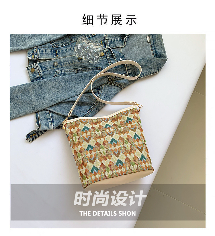 유럽과 미국의 레트로 버킷 백 2025 새로운 컬러 콘트라스트 통근 가방 트렌디 여성 패션 아방가르드 경량 어깨 크로스 바디 백스토어 가기