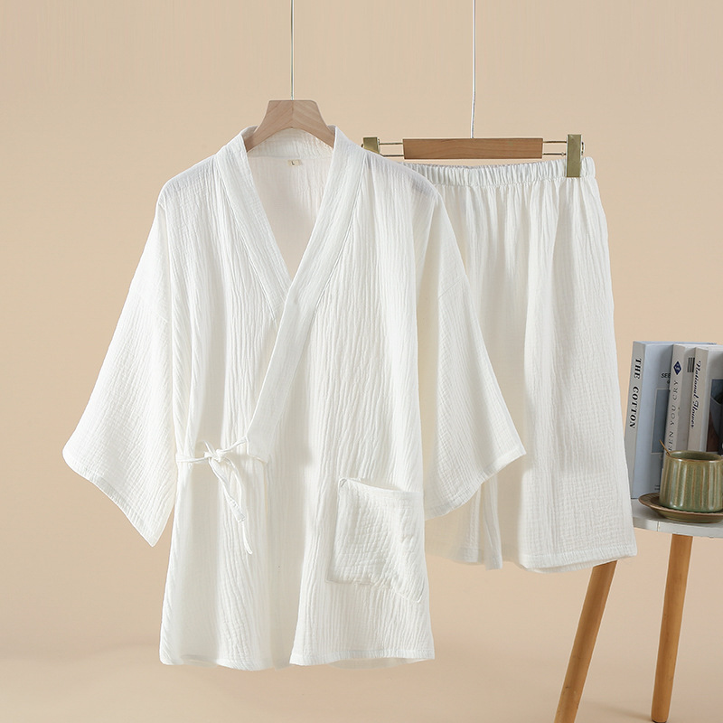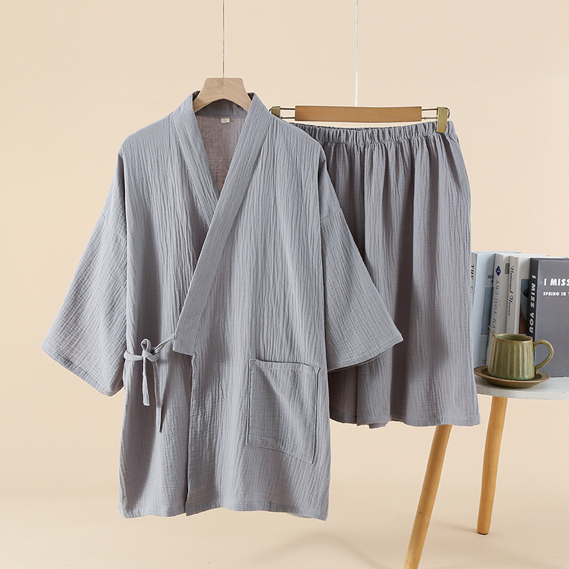 암호화 된 플러스 사이즈 커플의 크레페 기모노 반팔 반바지 봄과 여름 얇은 일본식 레이스 업 스웨트 남녀 홈 의류스토어 가기