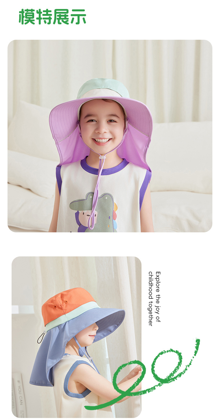 남학생과 여학생을위한 어린이 선 스크린 모자 햇살 어부 모자 큰모자 목도리 모자 태양 모자 여름 올 매치 외부 조수