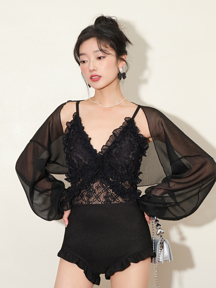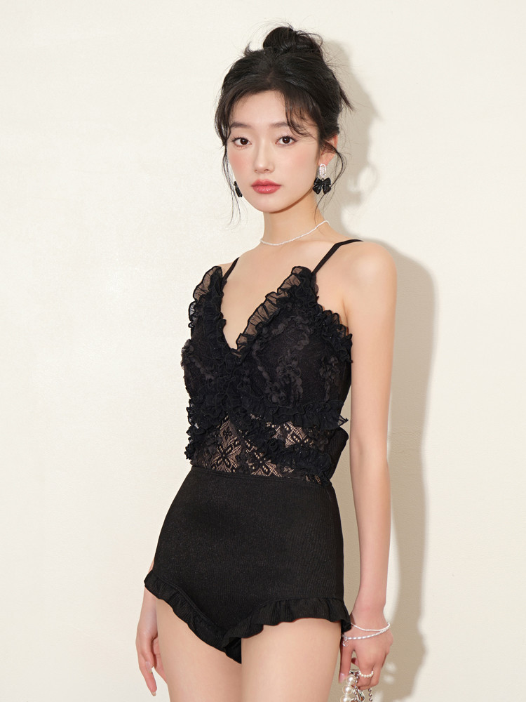 2025 새로운 수영복 여성 보수적으로 보수적 인 슬림 배꼽이 섹시한 레이스 한국 요정 수영복 여성 투피스 세트