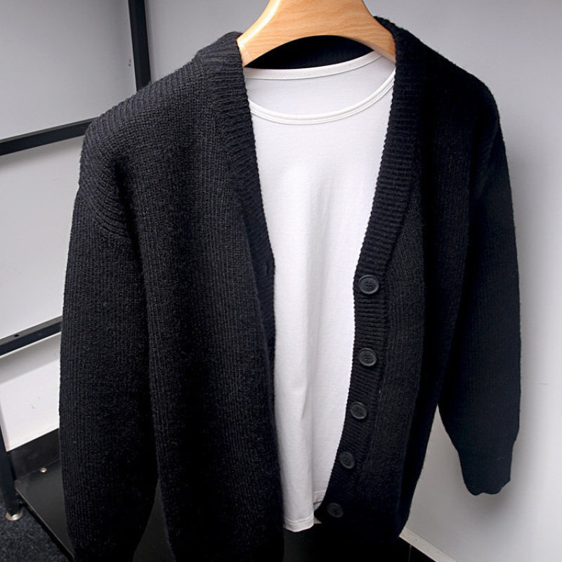 봄과 가을 새로운 화이트 카디건 남자 니트 스웨터 유행 게으른 스타일 스웨터 재킷 남자의 느슨한 한국 스타일 스웨터
