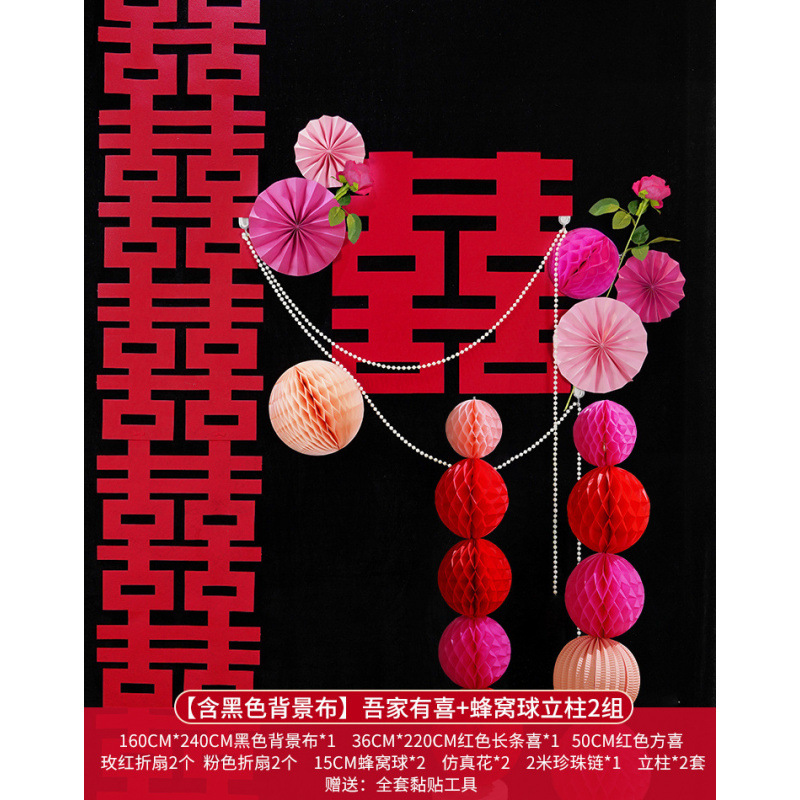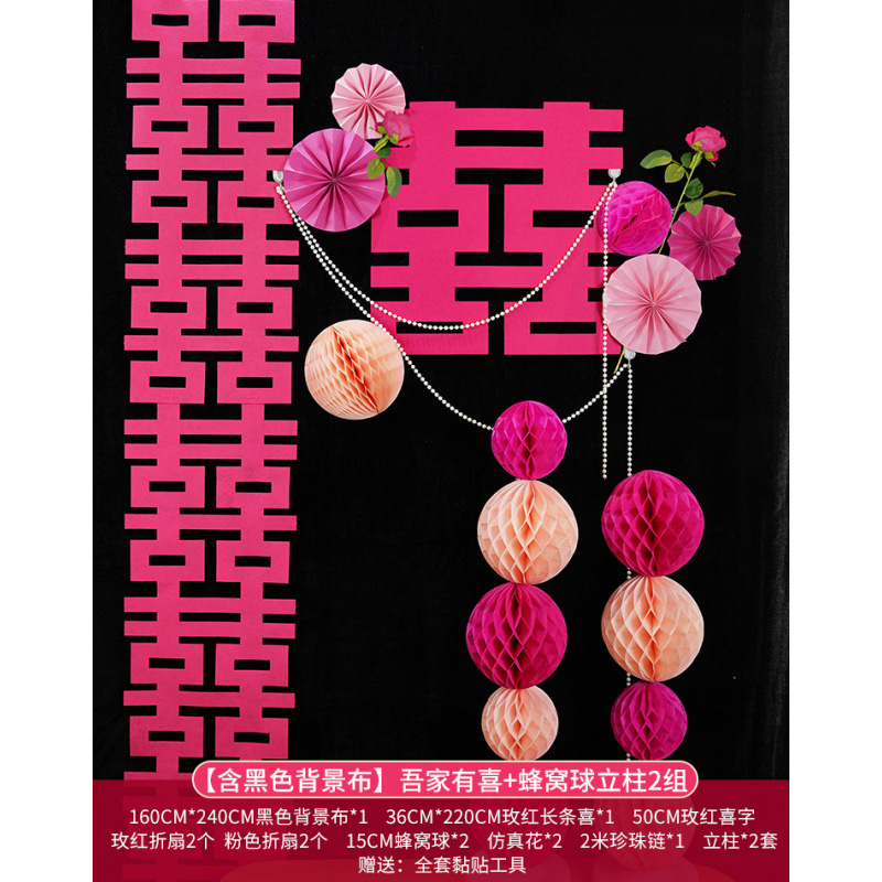 • [검은색 배경 천 포함] 천성 + 벌집 공 기둥 2세트 + 사랑 장식
