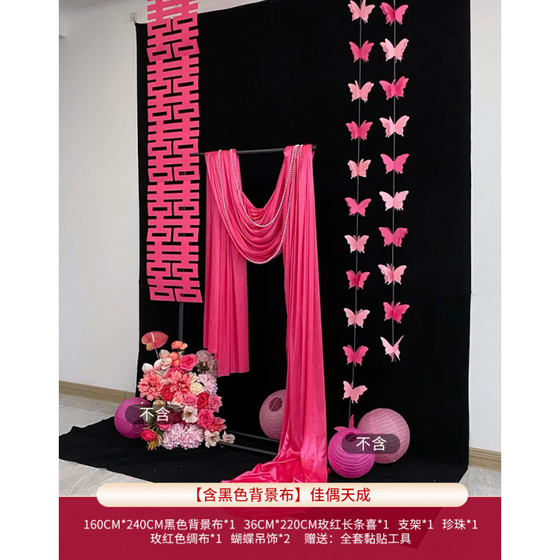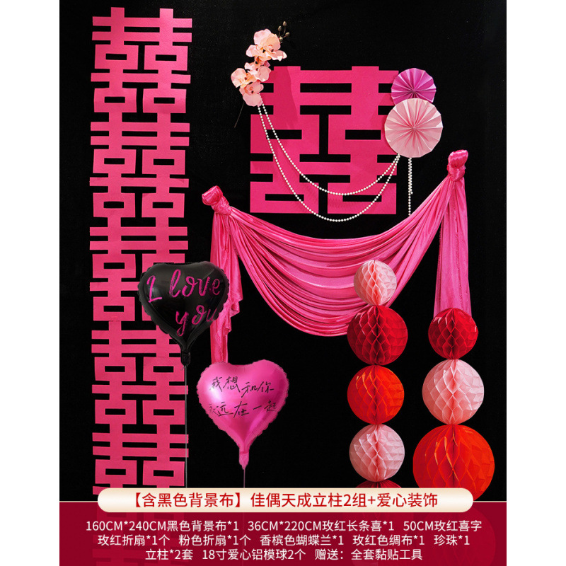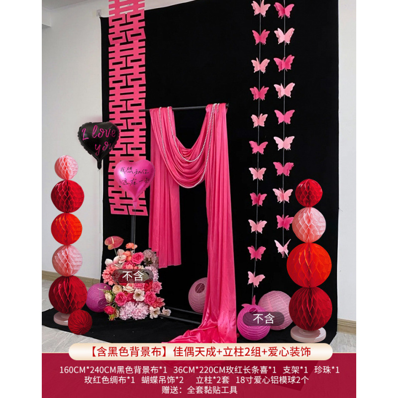• [검은색 배경 천 포함] 긴 웨딩 배경 벽 패키지 + 알루미늄 필름 하트 1m개