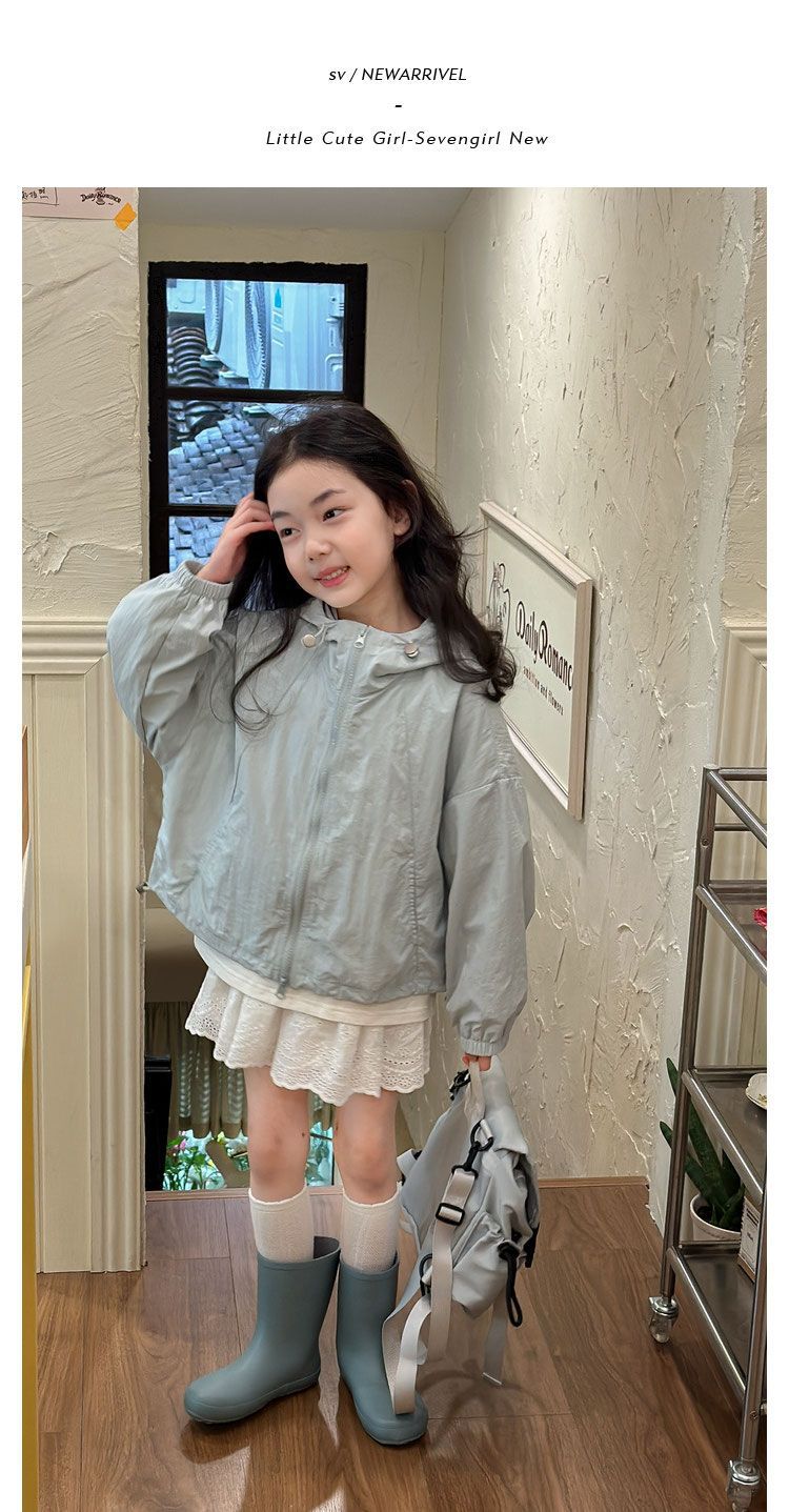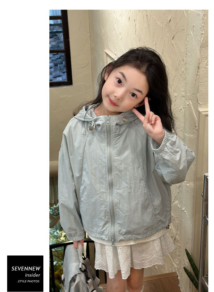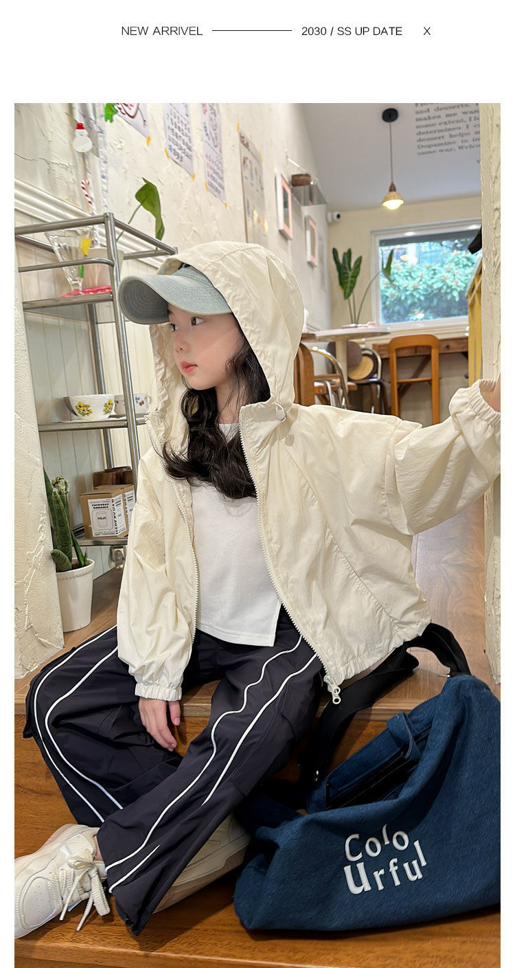 소녀 한국식 얇은 선 스크린 재킷 봄 새로운 어린이 올매치 캐주얼 후드 선스크린 재킷