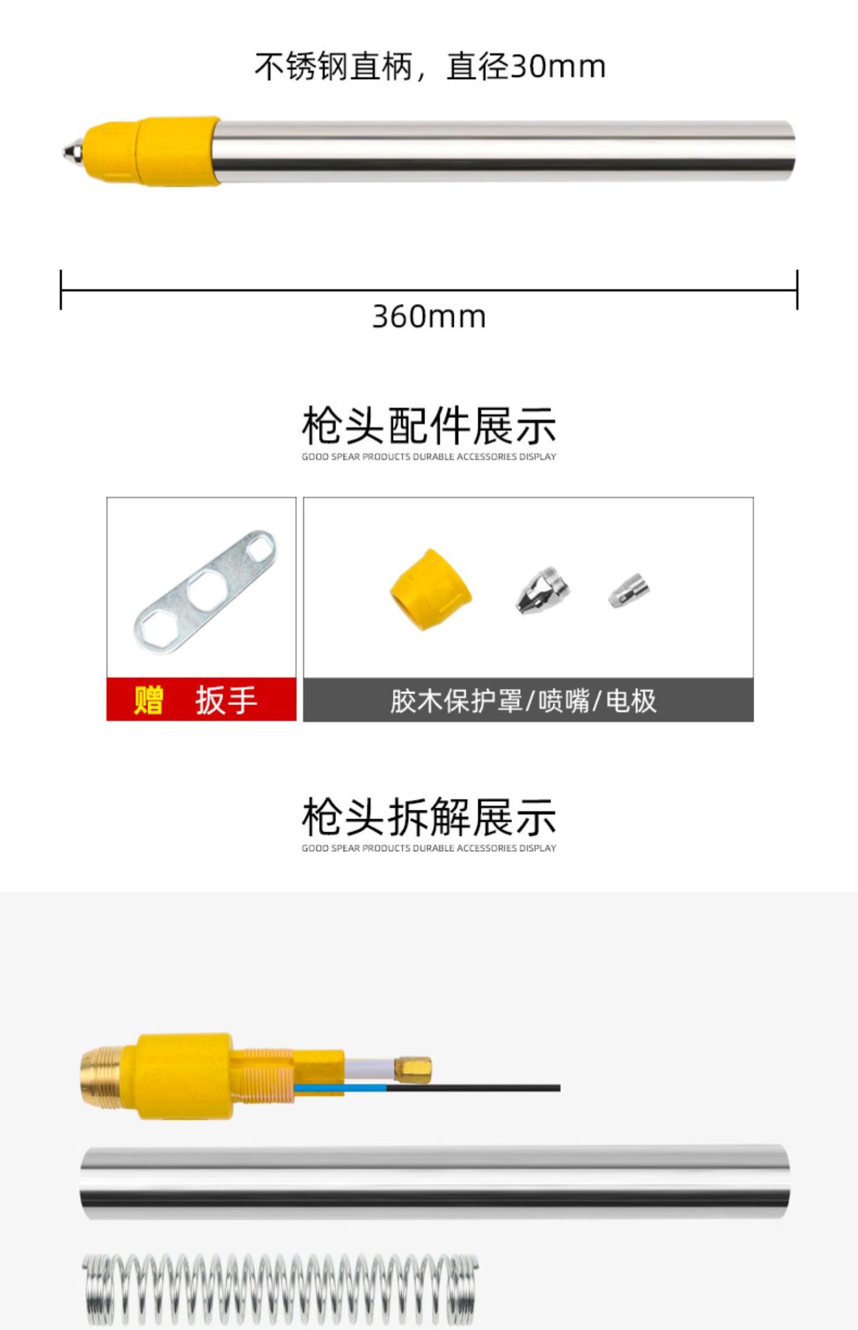 • P80 초음속 스테인레스 스틸 직선 핸들 건 팁