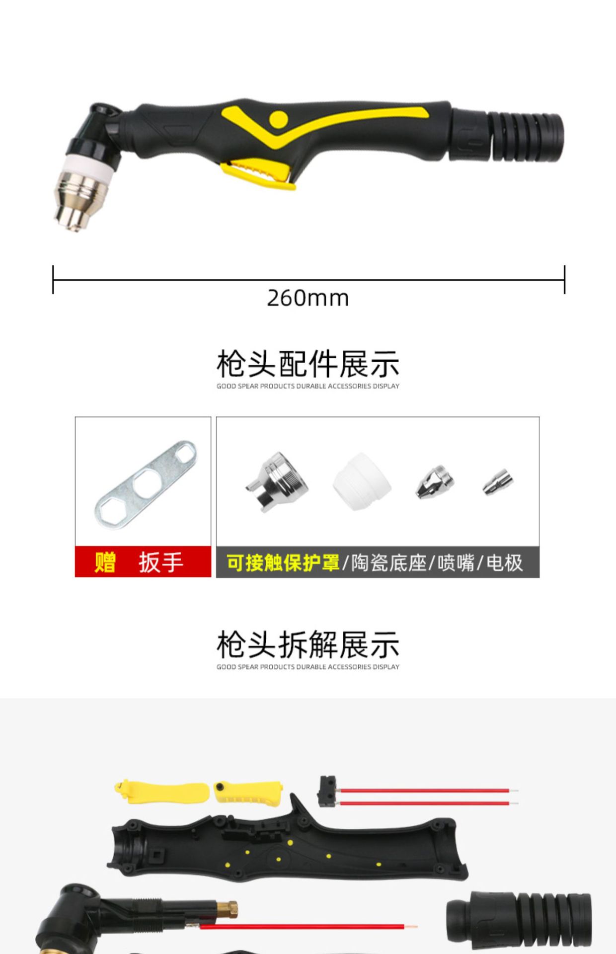 • P80 노란색과 검정색 사각형 핸들 플라즈마 건 헤드